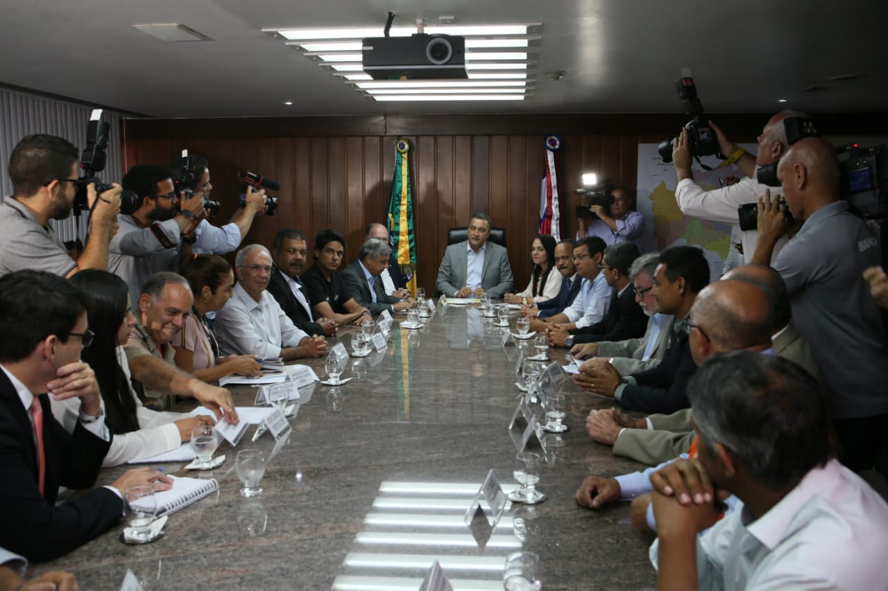 O governador Rui Costa recebeu, nesta quinta-feira (17), prefeitos e representantes de oito municípios baianos atingidos pelas manchas de óleo que avançam pelo litoral do Nordeste. Além de discutir a situação e compartilhar informações, o encontro foi voltado ao alinhamento de ações de limpeza das praias e mangues afetados, assim como o recolhimento e o descarte apropriado do material poluente.