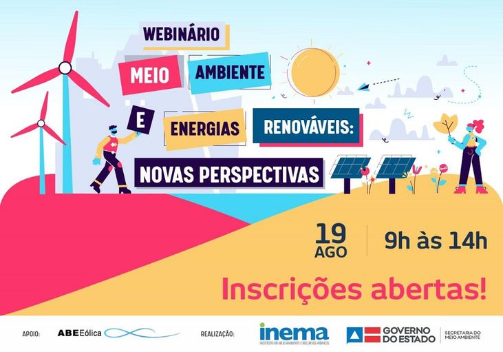 Promovido conjuntamente pela Secretaria do Meio Ambiente (Sema) e o Instituto do Meio Ambiente e Recursos Hídricos (Inema), com apoio institucional da Associação Brasileira de Energia Eólica (AbEEeólica), o evento será transmitido para o público pelo canal do Youtube da Sema: youtube.com/semabahia. As inscrições podem ser feitas através do site: http://eventos.meioambiente.ba.gov.br. Para a certificação, os participantes deverão assinar uma lista de presença que será disponibilizada durante a transmissão ao vivo.