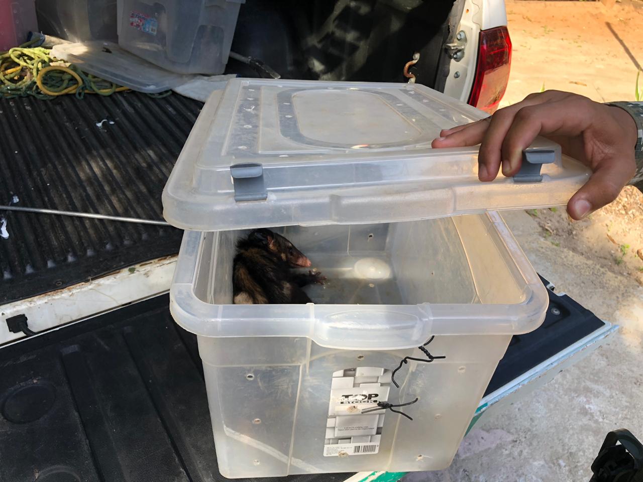 Além desta, outros animais também foram entregues no Centro de Triagem, como um Gavião Carijó (Rupornis magnirostris), uma Jibóia (Boa constrictor) e um Sariguê-de-orelhao-preta (Didelphis). O Gavião e o Sariguê foram encontrados pelo Grupo Especial de Proteção Ambiental da Guarda Municipal (GEPA/GCM), e a Jibóia foi resgatada pela Companhia de Polícia de Proteção Ambiental (COPPA).