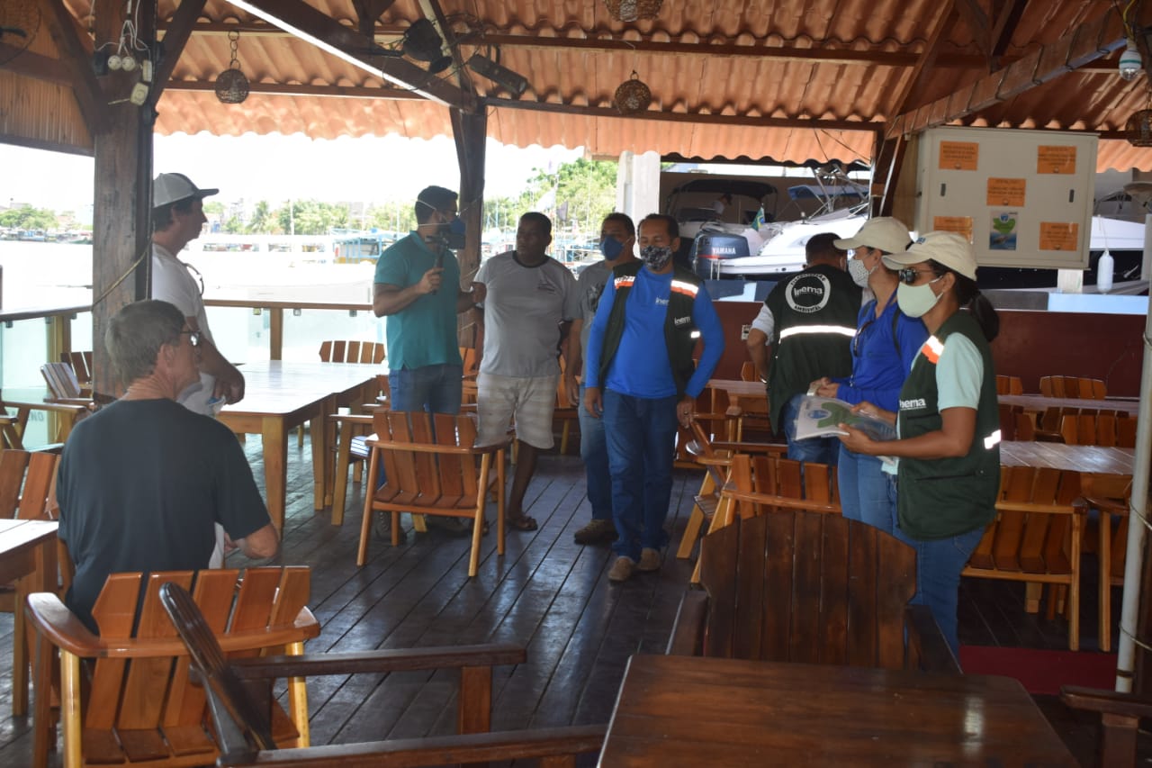 Pensando nisso, o Inema, em ação conjunta com os técnicos da SEMMAM, promoveu uma apresentação educativa, abordando Conduta Consciente em Ambientes Recifais e Praia com a participação de vários atores sociais, pescadores, operadores de turismo, Marinha, Polícia Militar,  Instituto Chico Mendes de Conservação da Biodiversidade (ICMBIO) e outros que contribuíram com questionamentos e elucidações sobre o motivo abordado. Para ampliar o alcance da informação, foi realizada, ainda, uma colagem de cartazes no local.
