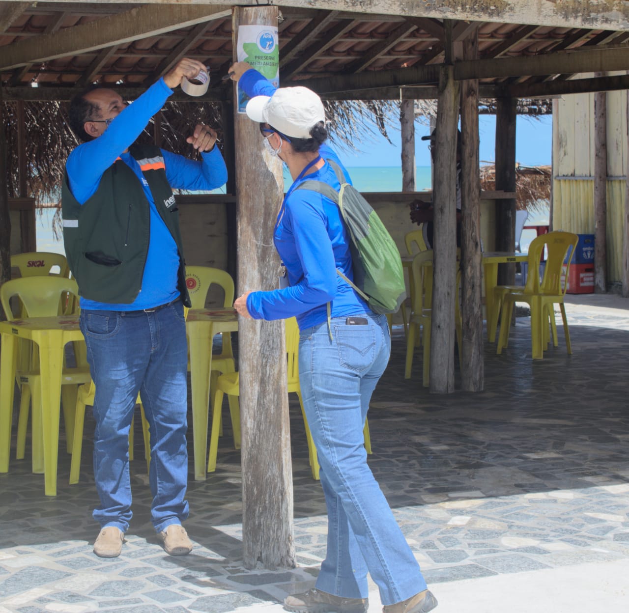 Após a apresentação, os técnicos ambientais deram início a um trabalho de instrução e educação ambiental em toda orla de Alcobaça e junto a alguns operadores de Turismo de Caravelas, fazendo ainda uma circulação na região do Cais e recebendo a visita do Responsável pelo projeto Tamar/Cepene. Nos dias subsequentes, foi realizada, também, visitas em praias, fixando cartazes junto aos bares, barracas, restaurantes, lanchonetes e hotéis, que muito ajudam na conscientização da população.  Para ampliar o alcance, foi solicitada ajuda, inclusive, das Rádios FM’s, que prontamente ajudaram na divulgação visando atingir a região almejada.