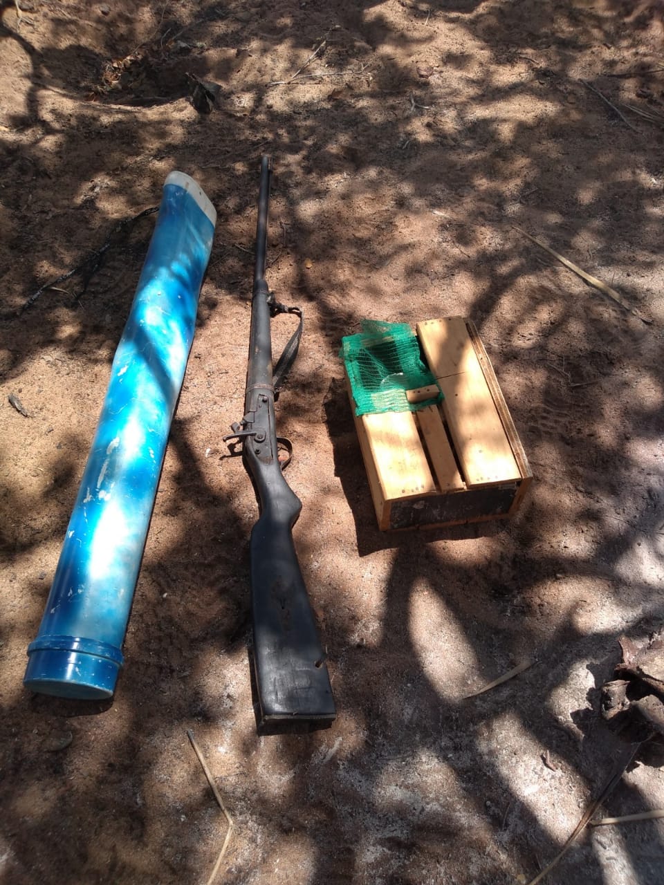 Na ocasião, foram apreendidas ainda seis espingardas de cartucho e de fabricação artesanal e, também, desarticulado um acampamento de caçadores encontrado na região.
