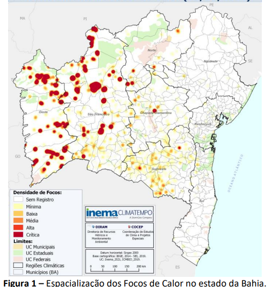 Na luta contra os incêndios florestais o Governo do Estado da Bahia não tem medido esforços para se antecipar a qualquer indício de incêndio e uma das fermentas utilizadas pelo Instituto do Meio Ambiente e Recursos Hídricos (Inema) é o Monitor de Focos de Calor. Com os dados gerados pelo Monitor, é possível identificar os locais mais críticos no estado, assim, os técnicos do Inema orientam o Corpo de Bombeiros Militar e brigadistas para concentrarem os esforços e atuação para debelar os focos de incêndios logo no estágio inicial.