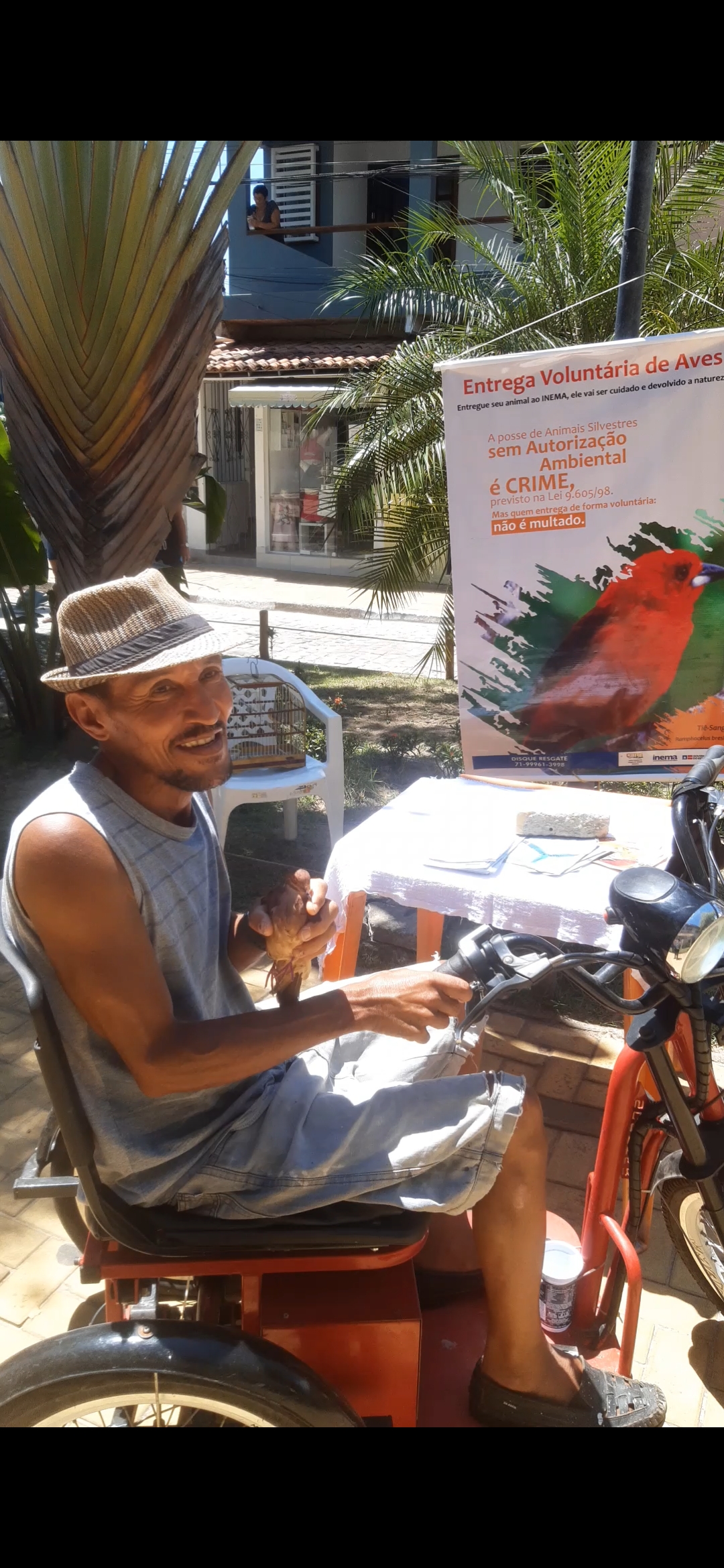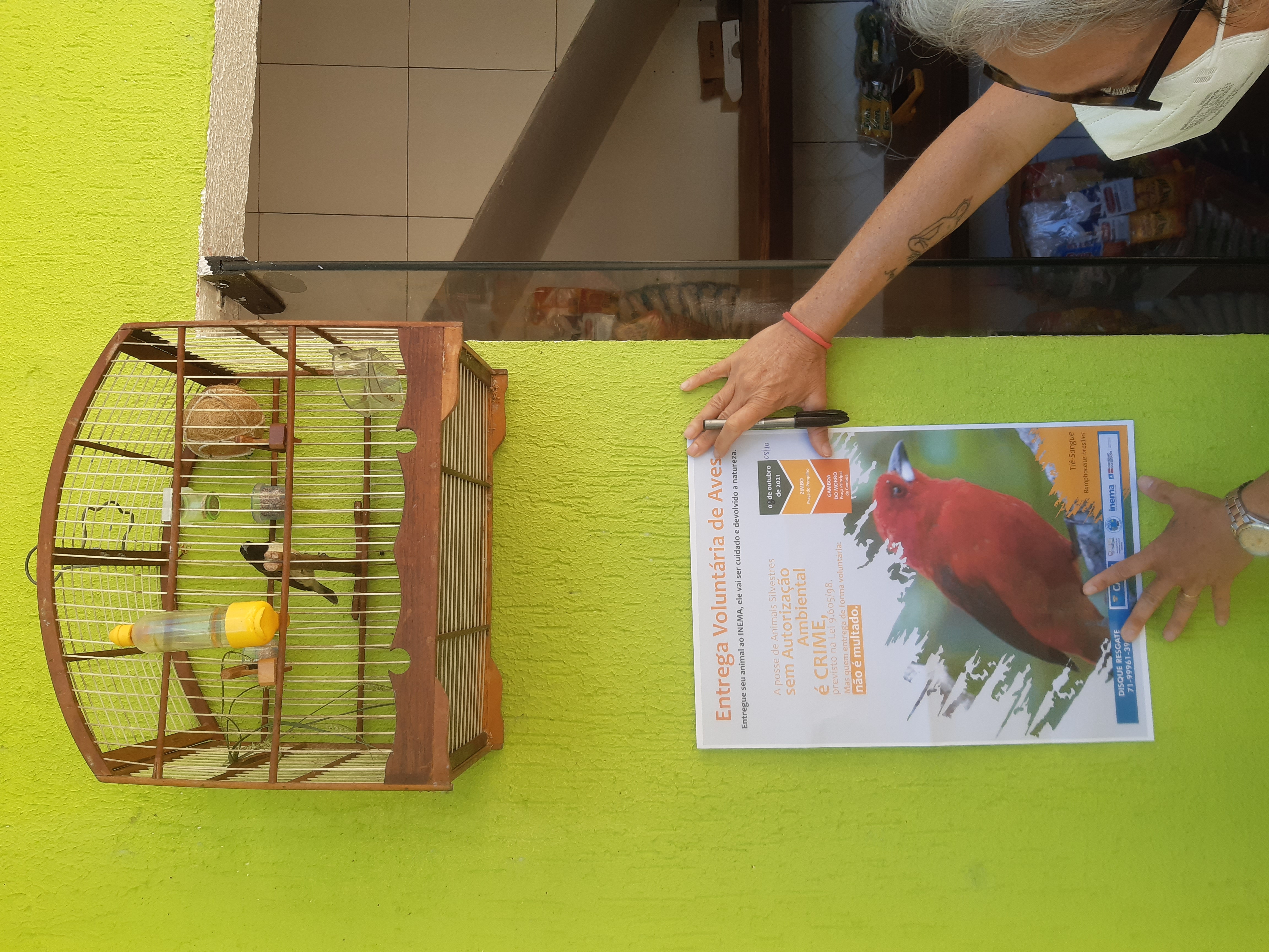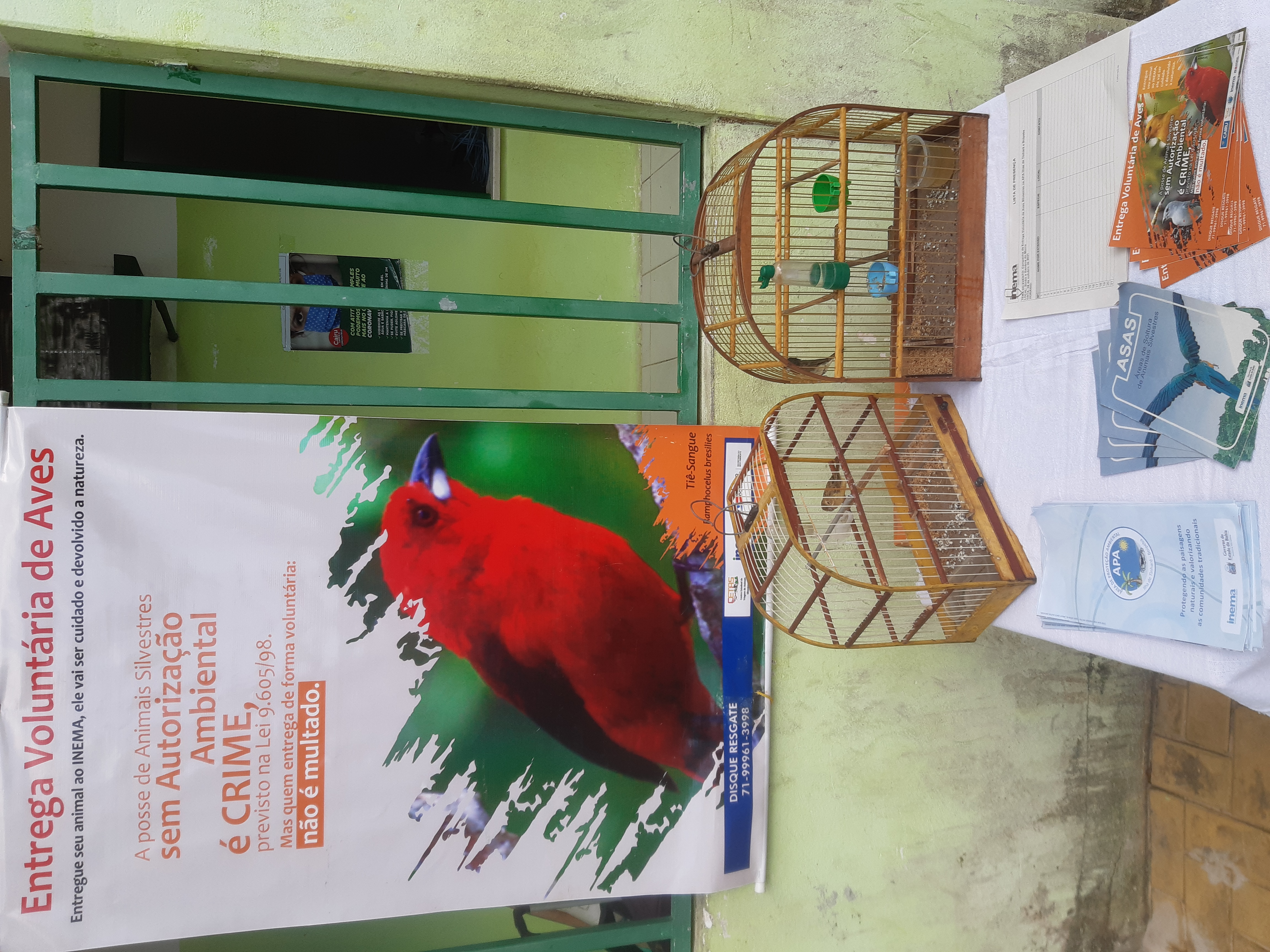 Para a bióloga da Coordenação de Gestão de Fauna do Inema (CGFAU), Rosane Barreto, a sensibilização se dá através do diálogo participativo, propiciando uma reflexão sobre a conservação dos animais. “Estamos realizando visitas de porta em porta, explicando, de maneira didática, sobre as ameaças aos animais e a legislação de proteção da fauna silvestre, bem como, a importância destas espécies para biodiversidade. A entrega voluntária isenta o cidadão das sanções previstas na legislação, como multa e implicações criminais. Muitos dos que mantém esses pássaros em gaiolas não tinham conhecimento que a retirada deles da natureza pode gerar um desequilíbrio ao ecossistema, pois cada espécie exerce uma função ecológica, controlando a incidência de insetos, também são dispersores de sementes, sendo responsáveis por construir florestas, além da reprodução e multiplicação de sua própria espécie”.