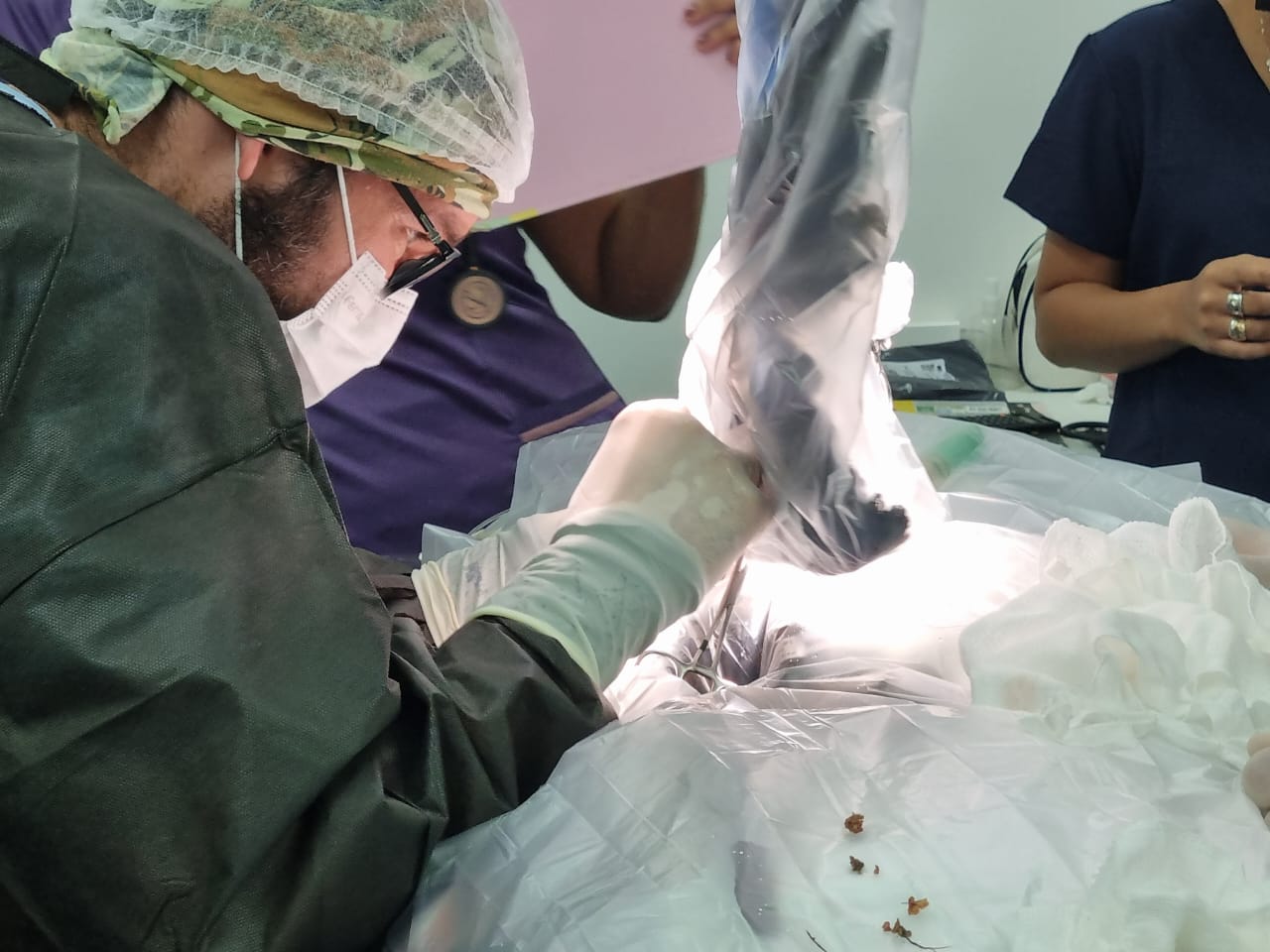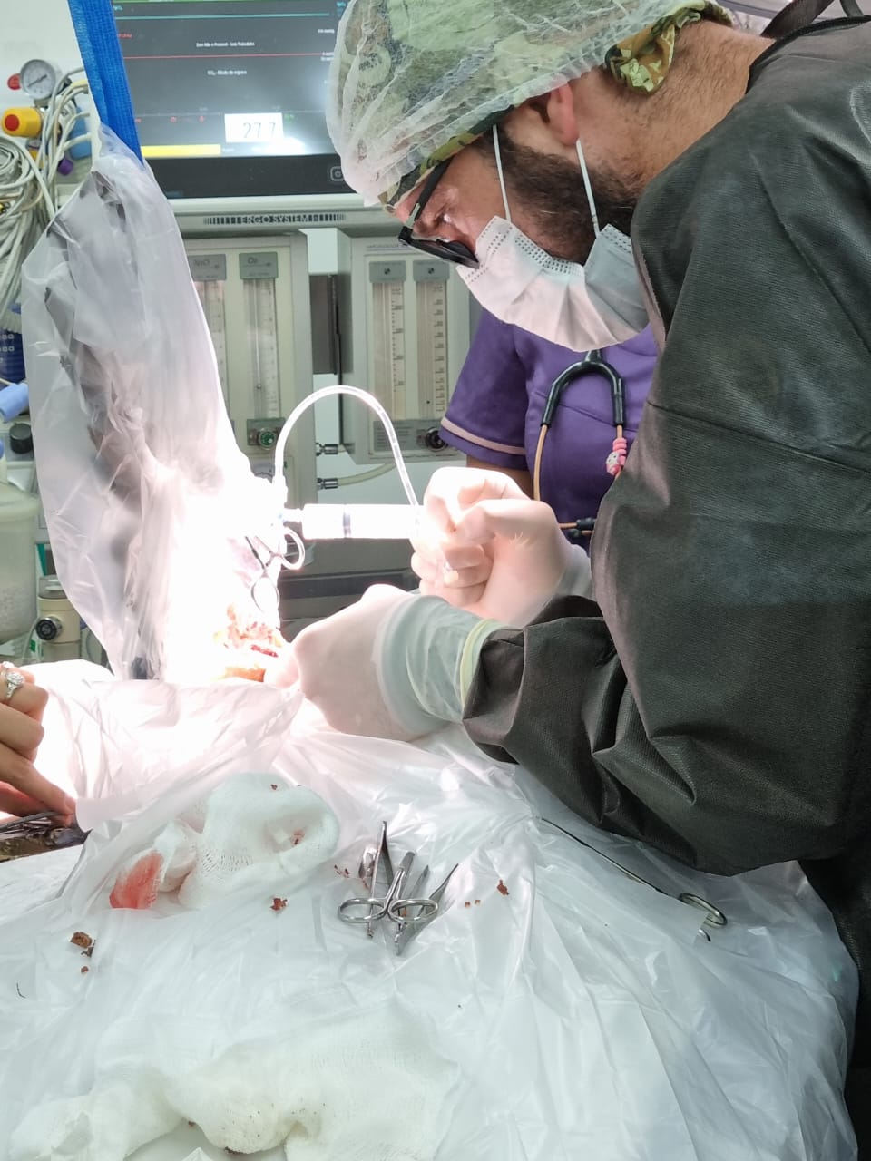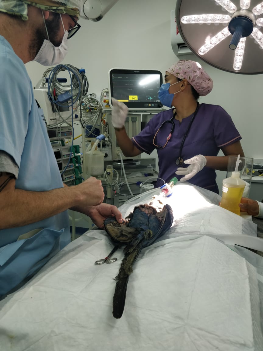 “Assim que constatamos a fratura em asa, o animal passou por um processo de estabilização com bandagem e ficou no aguardo do procedimento cirúrgico. Entramos em contato com a Clínica Dupet, que prontamente aceitou a parceria, e, assim, conseguimos marcar uma cirurgia de Osteossíntese de Úmero, com a parceria do Dr. Plínio Montalvani. Graças à eficiência de toda a equipe que participou, o procedimento cirúrgico na arara-azul-de-lear foi um sucesso”, explica Márcio, que também é médico veterinário do Inema.