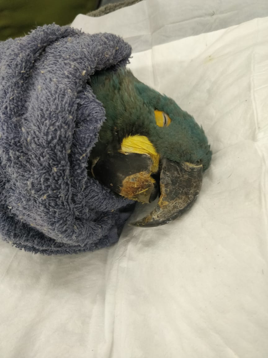 Atualmente, a Arara encontra-se em observação clínica, e, após reabilitada, será devolvida à natureza.