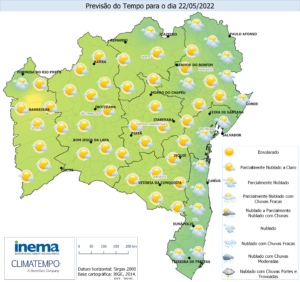 Para o domingo (22), a nebulosidade ficará variável no centro leste do estado, com maior concentração de nuvens nos municípios litorâneos. Já no interior do Estado, o tempo permanecerá firme no decorrer de todo o período.