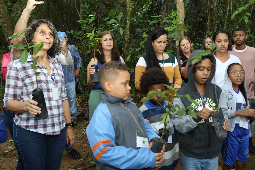 Alunos do Colégio Municipal Piratini, com idade entre 7 e 12 anos, participaram hoje (04), em Salvador, no Parque Metropolitano de Pituaçu, de uma série de atividades de sensibilização para a preservação e respeito ao meio ambiente. A ação é uma parceria entre o Governo da Bahia, a BRACELL e a Associação Baiana das Empresas de Base Florestal - ABAF, que doaram ao todo 360 mudas de árvores nativas da Mata Atlântica, com o objetivo de compensar a emissão de Gases de Efeito Estufa (GEE) emitidos durante o evento de lançamento do Inventário de GEE do Estado da Bahia, ocorrido em junho de 2022, e do VI Congresso Brasileiro de Reflorestamento Ambiental (CBRA).