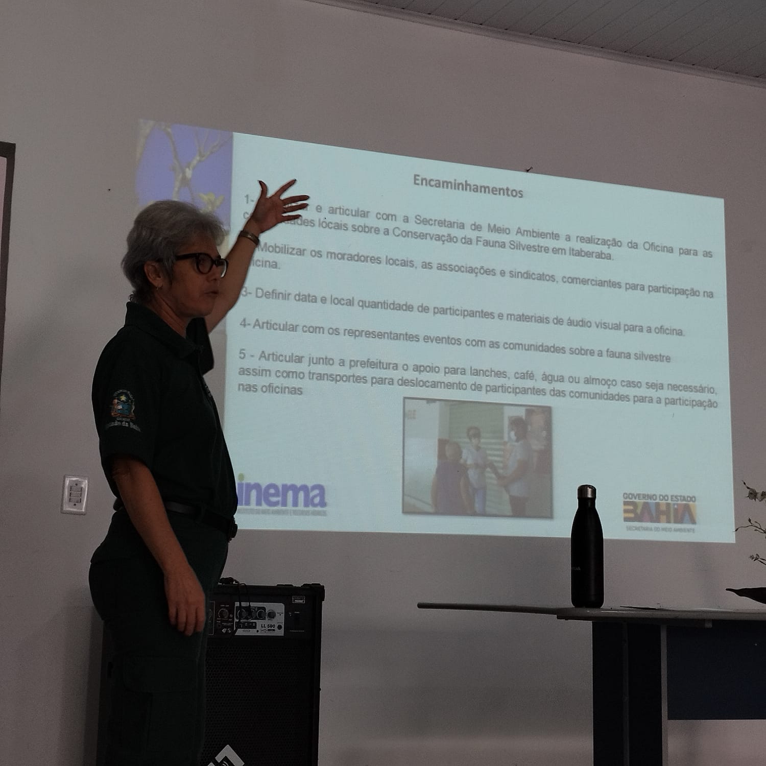 Durante o encontro, a bióloga da Coordenação de Gestão da Fauna do Inema, Rosane Barreto, apresentou as diretrizes e metas do Programa. “Este foi um momento para fortalecer parcerias entre o órgão ambiental do estado e as duas prefeituras assim como convidar as comunidades locais, associações e sindicatos rurais, Polícia Rodoviária Federal e o Corpo de Bombeiros para participar das oficinas”.