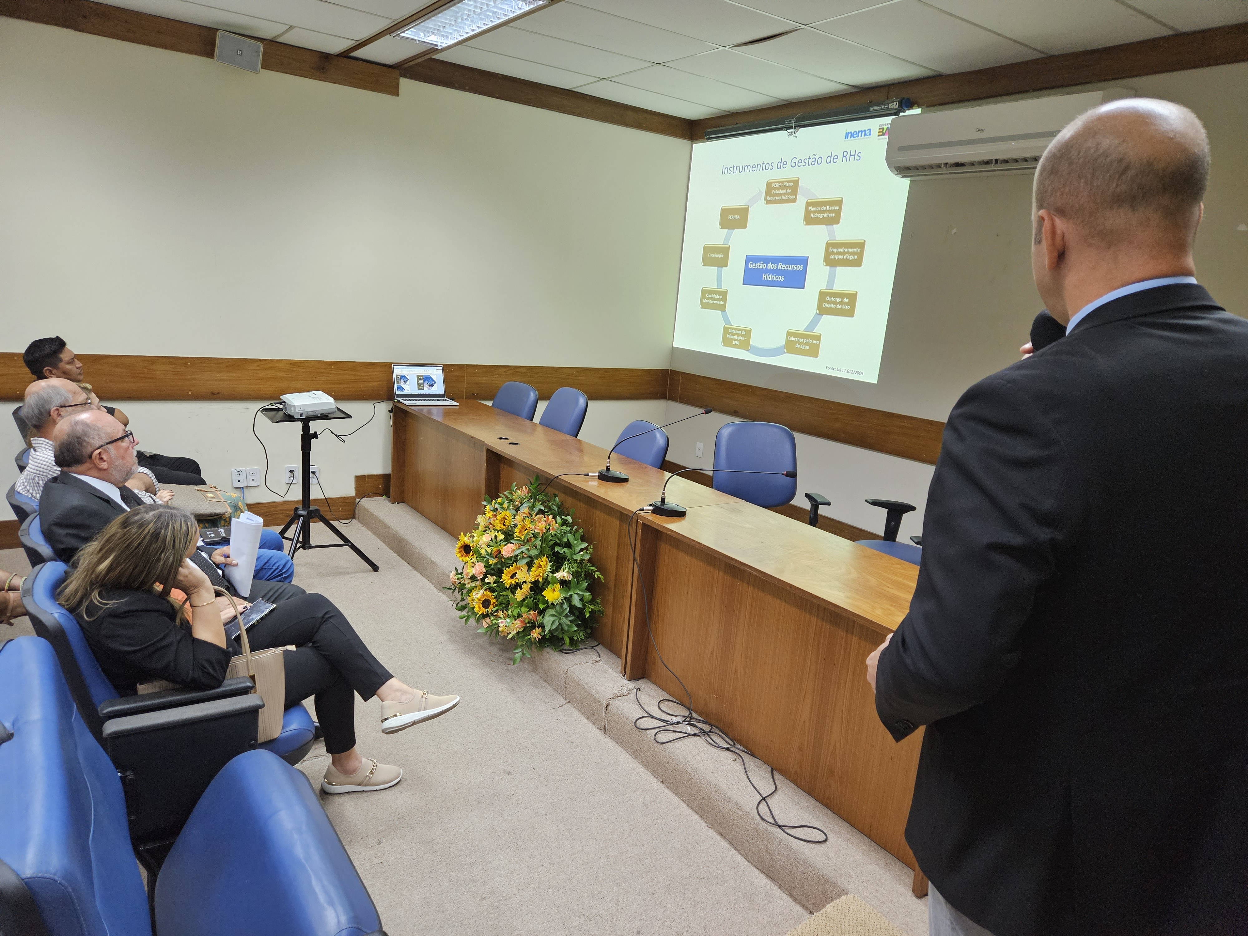Durante o encontro, o diretor de Recursos Hídricos e Monitoramento Ambiental do Inema, Antonio Martins, realizou uma apresentação sobre os programas e projetos capitaneados pela Sema e Inema, o Progestão, bem como, a estrutura do Sistema Estadual de Gerenciamento de Recursos Hídricos (SEGREH). “A partir desses resultados, nós identificamos que conseguimos alcançar mais de 90% das metas previstas. O Governo do Estado tem consolidado um modelo de planejamento para os próximos anos, voltado à uma estrutura estratégica com indicadores de desempenho”.