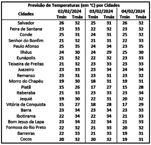 Tendência para a segunda-feira (05/02/2024)