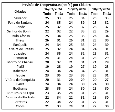 Tendência para a segunda-feira (19/02/2024)
