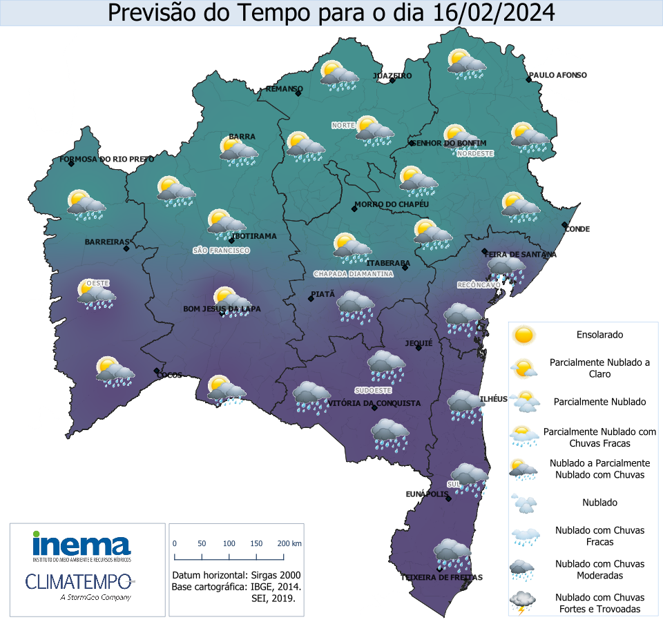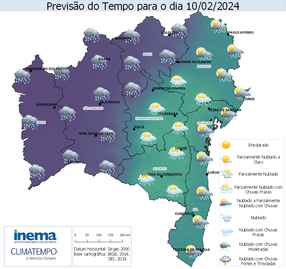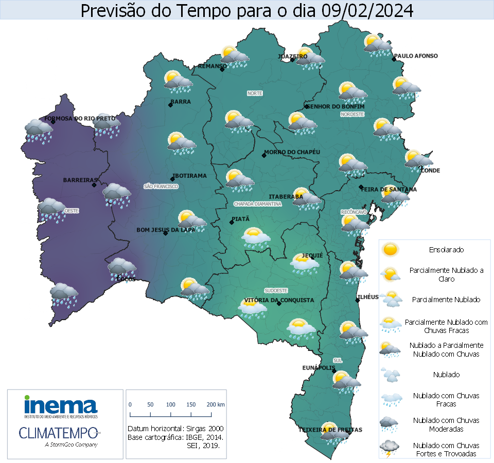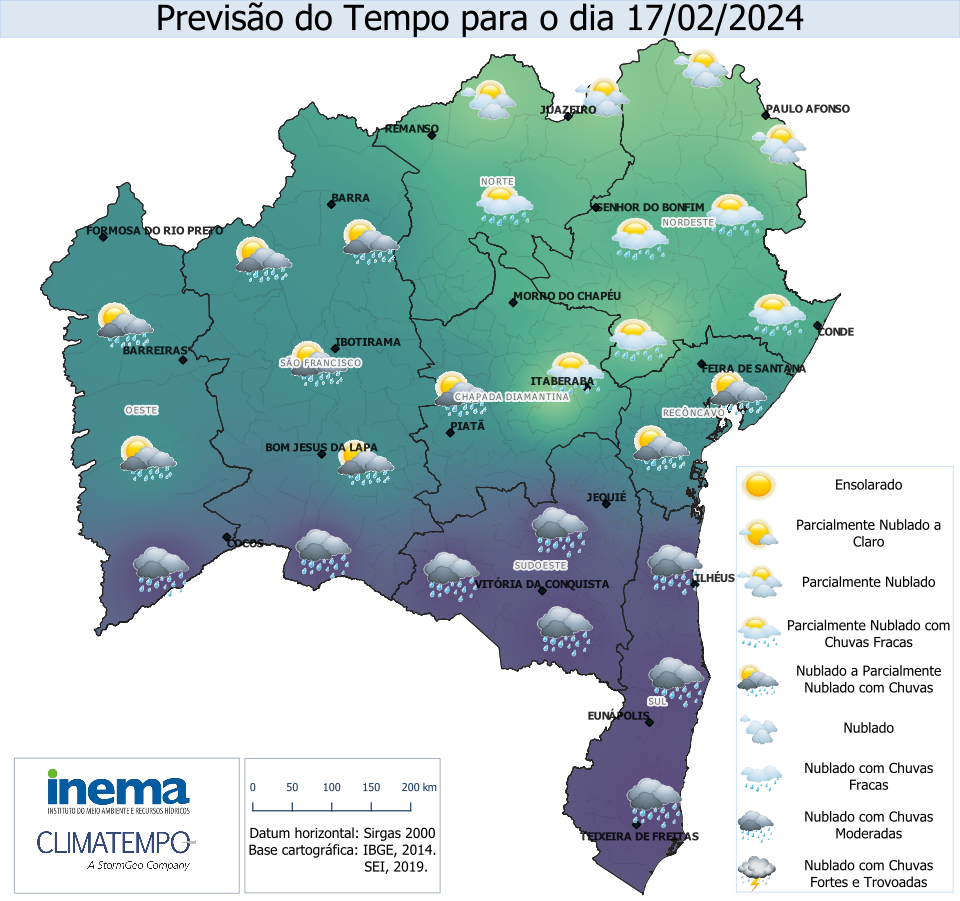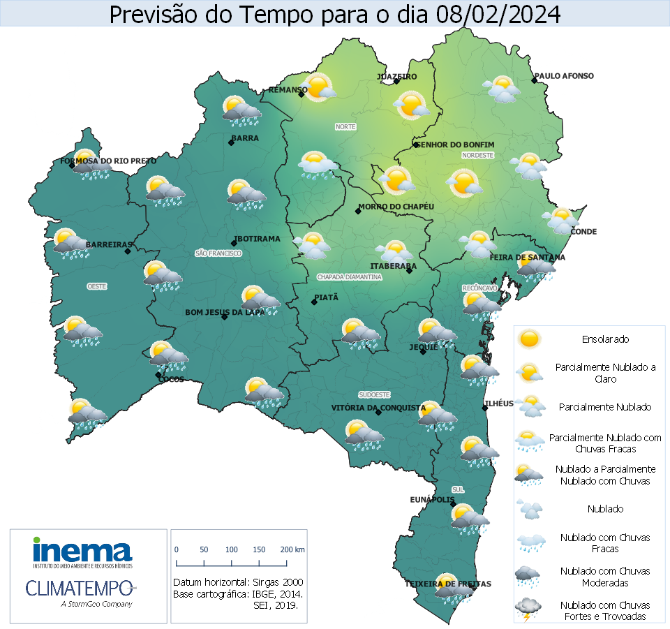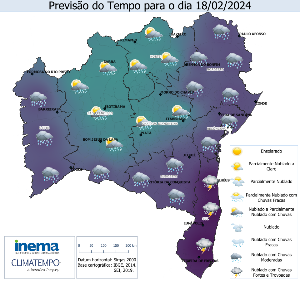moderadas, incluindo a capital Salvador. Já nas regiões de São Francisco, Chapada e Norte, o dia terá predomínio de chuva ocorrendo ocasionalmente