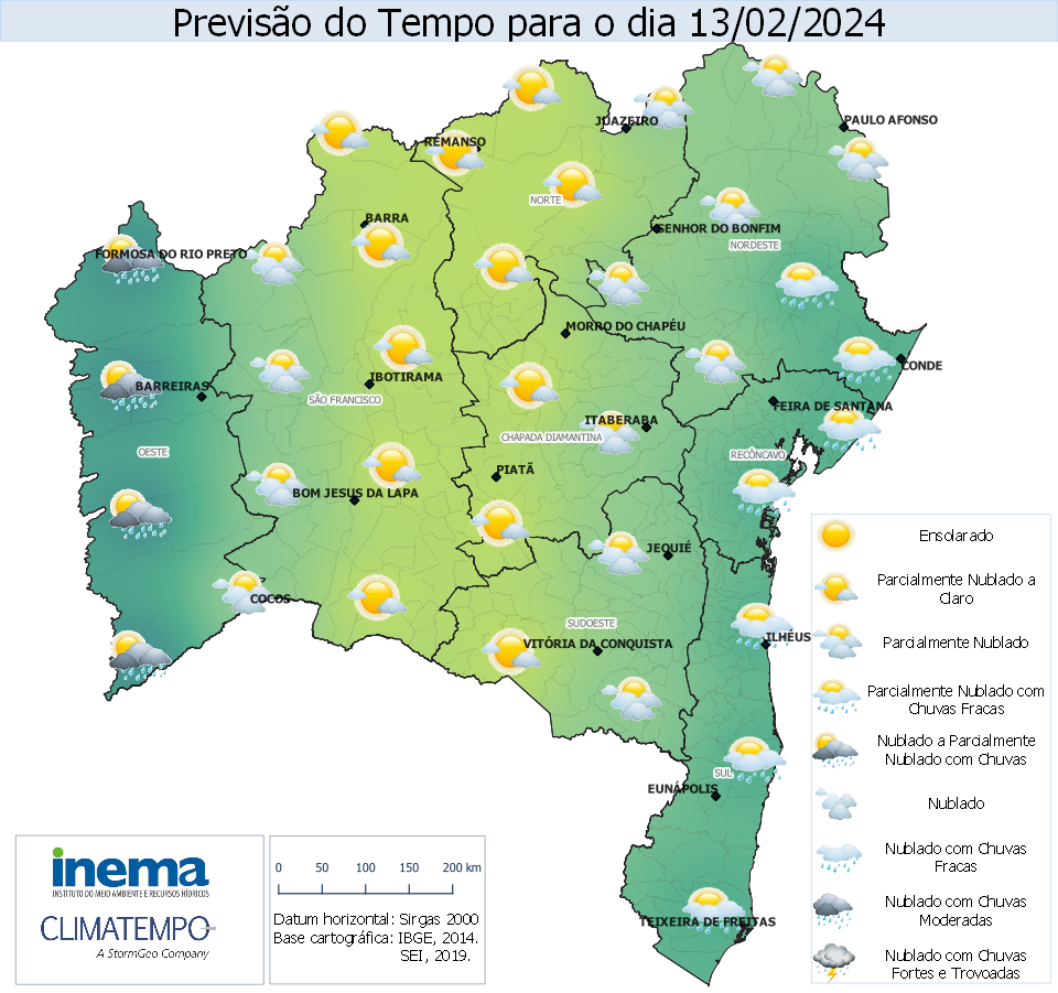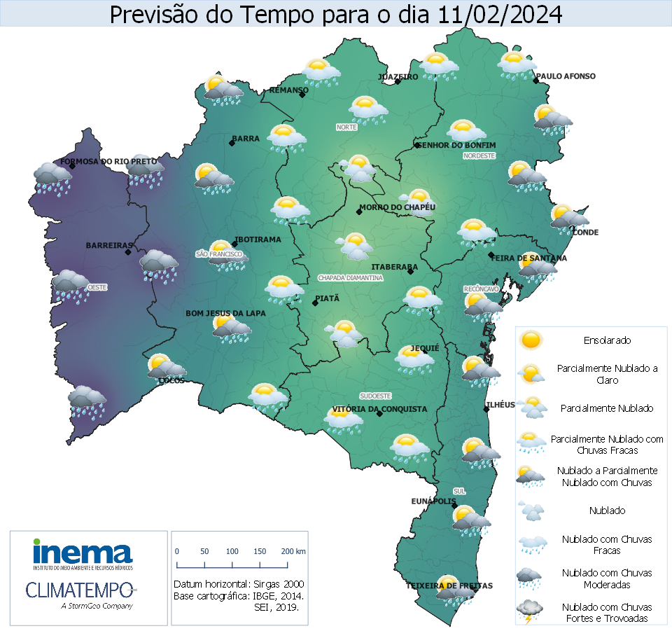 Ao longo do período, o maior acumulado foi registrado em Amélia Rodrigues (7,4 mm) e Cipó (3,4 mm). Nos demais postos pluviométricos os registros ficaram abaixo de 10 mm.
