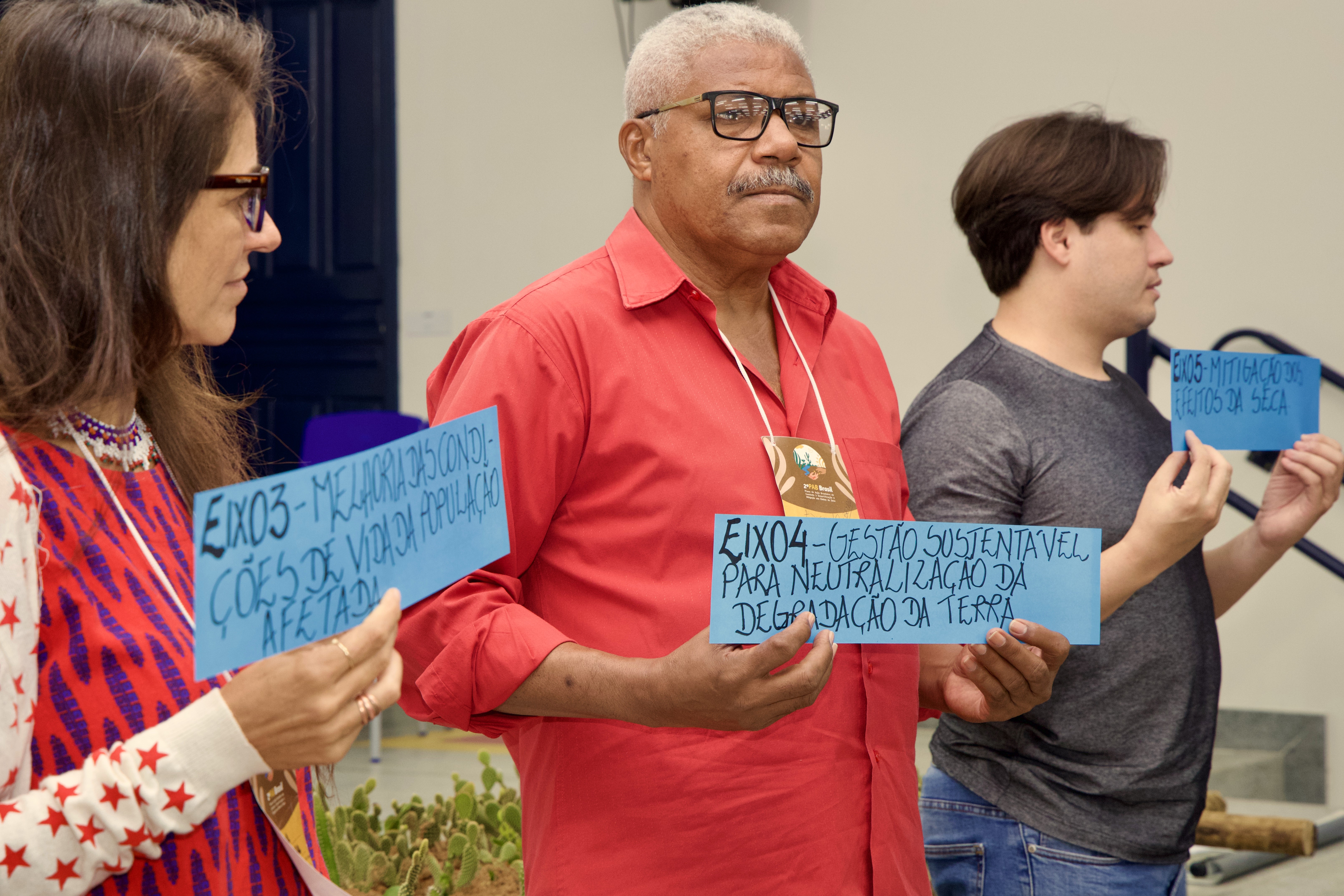 Ao longo da programação do seminário, os participantes se organizaram em grupos de trabalho para explorar os cinco eixos fundamentais na construção do PAB-BRASIL. A Bahia se destacou nesse processo ao apresentar ideias inovadoras em cada um dos eixos, ressaltando a importância da governança local, da pesquisa e inovação, da melhoria das condições de vida das populações afetadas, da implementação de práticas sustentáveis para combater a degradação da terra e da mitigação dos efeitos das secas.