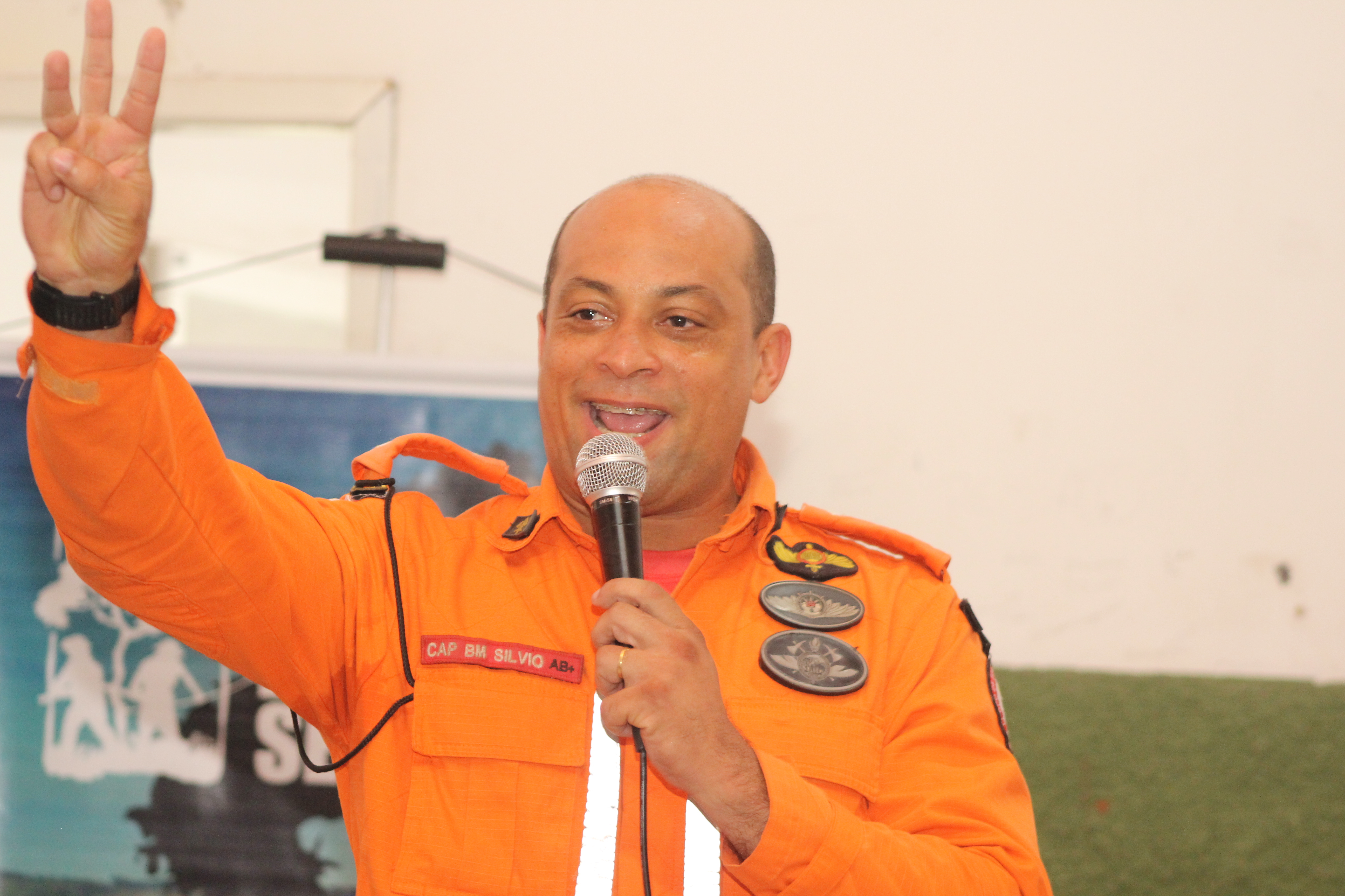 Ao palestrar sobre a importância da prevenção como a principal arma no combate aos incêndios florestais, o Capitão CBMBA Álvaro Serrão explanou sobre a ação que é feita nas escolas com as crianças das comunidades nos municípios onde acontecem incêndios.