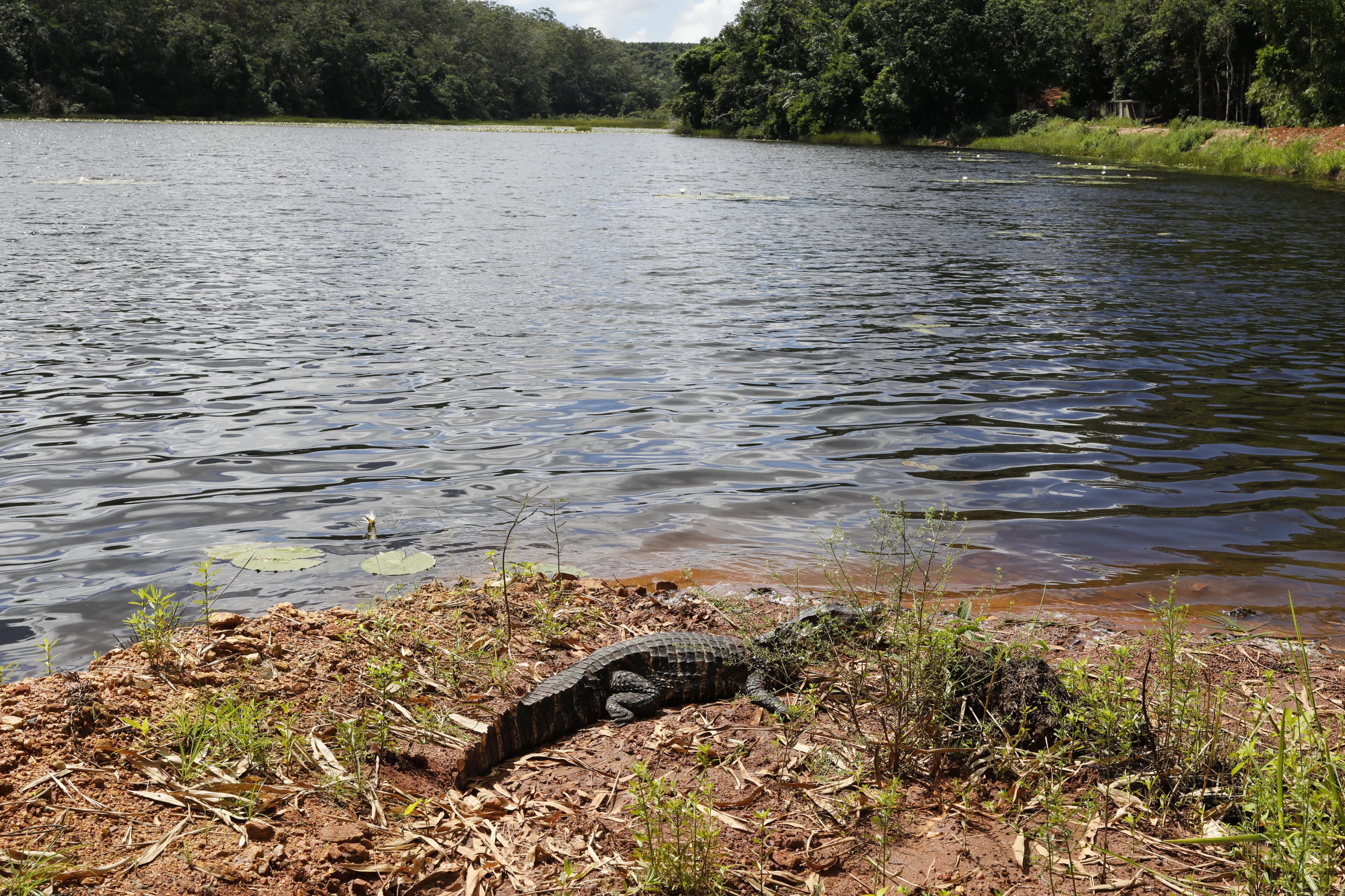 Nesta sexta-feira (05), o Centro de Triagem de Animais Silvestres (CETAS) de Salvador, gerido pelo Instituto do Meio Ambiente e Recursos Hídricos (Inema), realizou a soltura de 23 animais silvestres. Dentre eles, destaca-se o Jacaré [Paleosuchus palpebrosos], um macho de 1,5 mt resgatado na praia da Pituba no último feriado.
