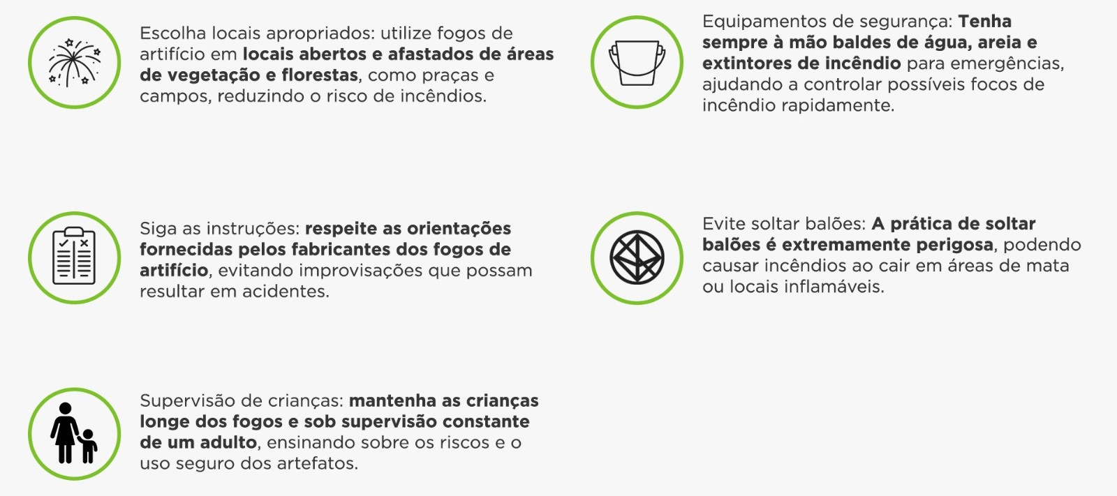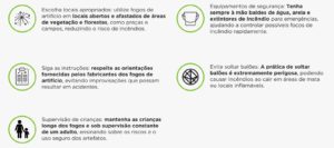 “Fagulhas podem atingir áreas de vegetação seca, iniciando focos de incêndio que podem se espalhar rapidamente, causando danos irreparáveis à flora e fauna local. Então, a orientação é respeitar as áreas naturais e manter os fogos de artifício longe desses locais”.