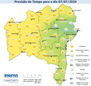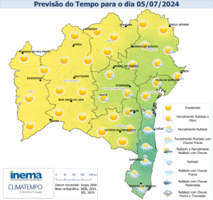 A tendência para segunda-feira é de tempo estáveis na maior parte do estado, podendo ocorrer chuvas pontuais e de fraca intensidade apenas em algumas localidades do Sul baiano.