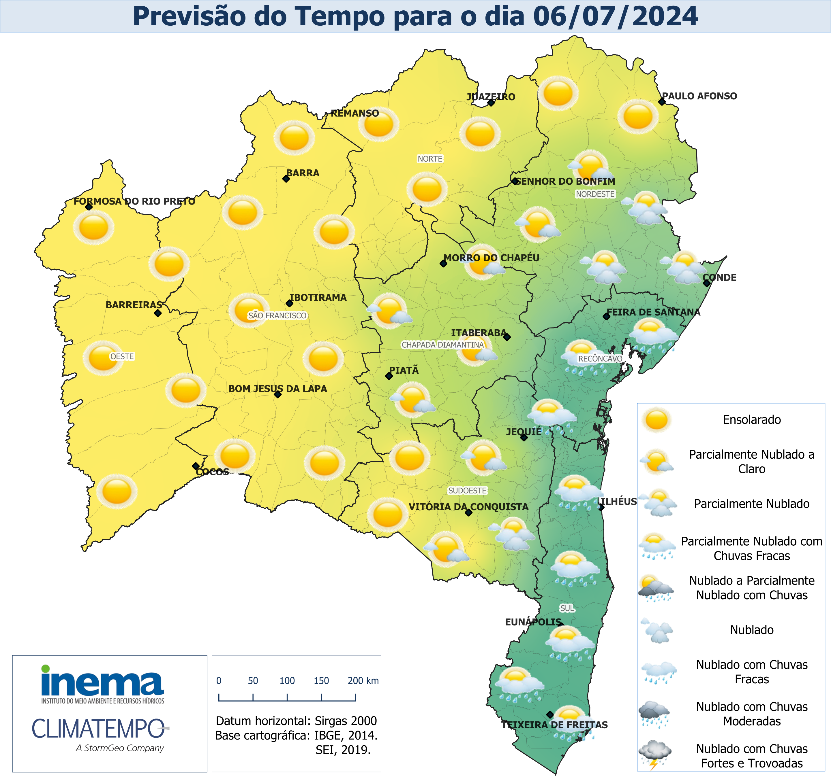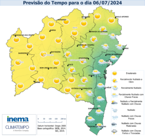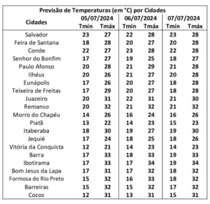 Ao longo do período, os maiores acumulados foram registrados em Conde (6,8 mm), Nilo Peçanha (6,6 mm) e Esplanada (3,0 mm). Nos demais postos pluviométricos os registros ficaram abaixo de 3 mm.