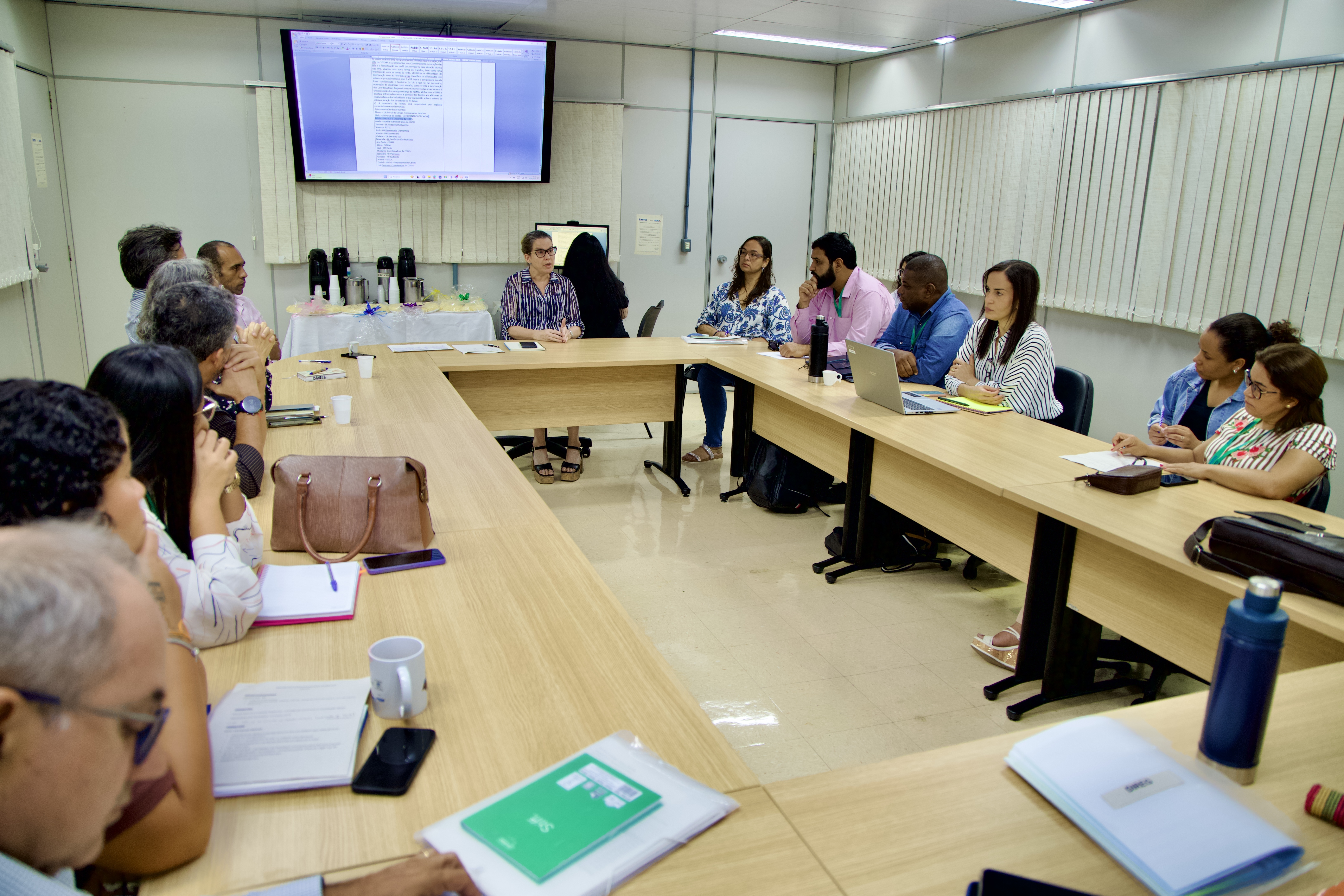 “As pautas não devem ser unilateralmente nossas, das diretorias, das técnicas, mas também de vocês. A gente propôs a pauta, mas a gente também tem a expectativa que vocês nos pautem em cima de demandas de vocês.”, disse a diretora-geral do Inema. A programação seguiu com apresentações da Coordenação de Gestão Descentralizada e Interação (CGDIS), responsável pelas URs.