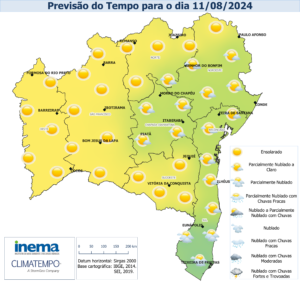 O tempo seguirá estável em praticamente todo território baiano. Como nos dias anteriores, apenas no setor leste, deverá se manter com maior nebulosidade e com possibilidade de chuvas nas áreas litorâneas, sobretudo, em localidades do litoral sul onde pode ocorrer eventos pontualmente. Nas demais regiões o céu apresentará predomínio de sol com mínima possibilidade de chuva.