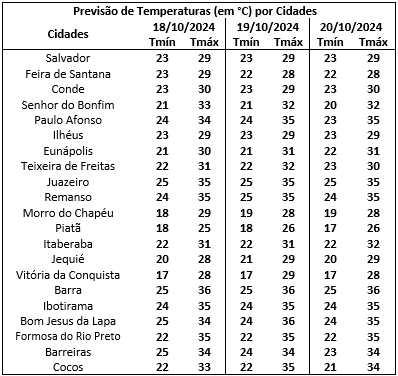 Tendência para a segunda-feira (21/10/2024)