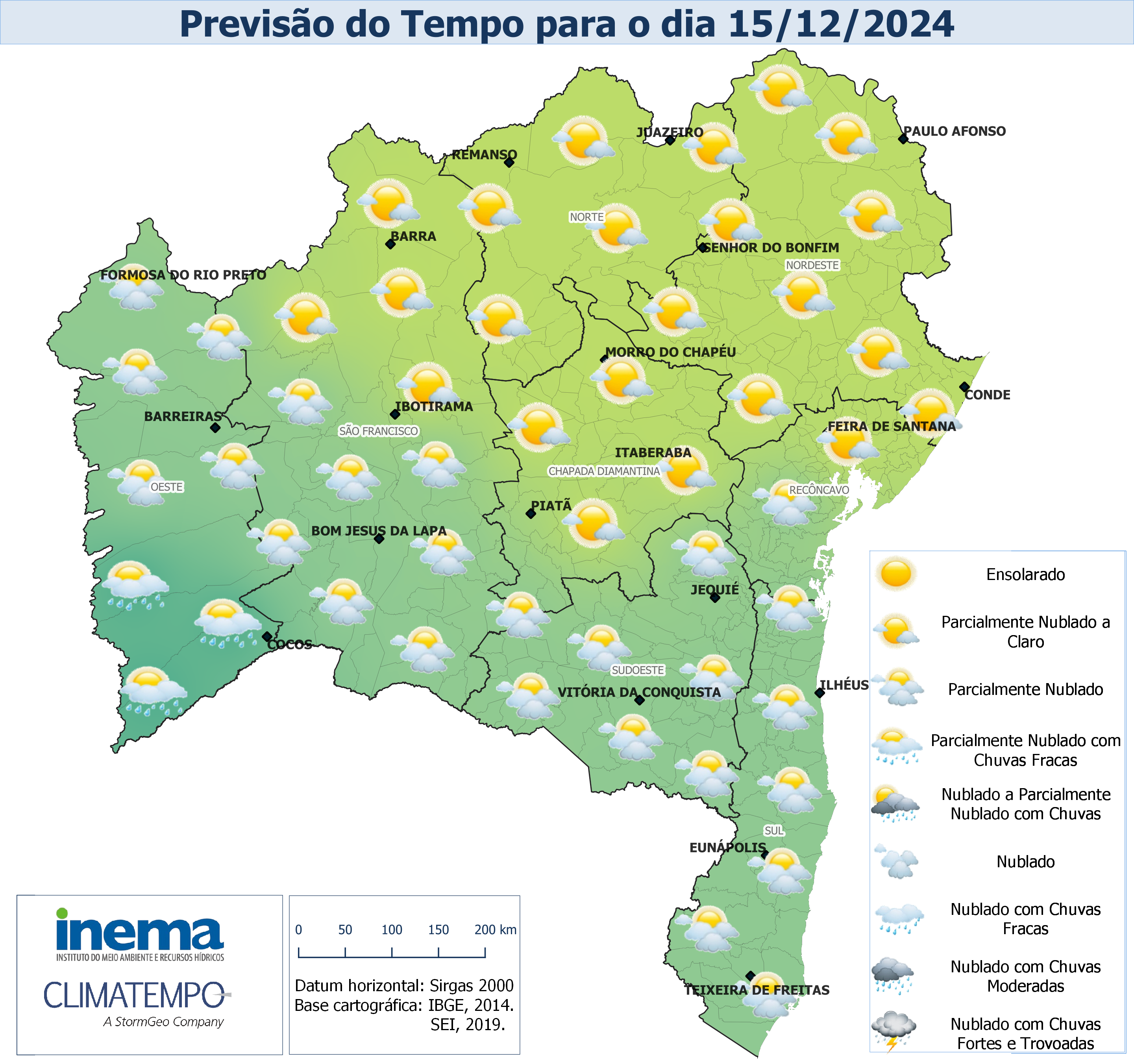 Neste domingo, o tempo se manterá estável, com predomínio de céu parcialmente nublado a claro em praticamente toda a Bahia. Apenas em algumas localidades do extremo Oeste do estado, que são esperadas chuvas pontuais e de fraca intensidade. No setor centro-sul o céu ficará parcialmente nublado com predomínio de tempo firme. Nas demais regiões o tempo deverá permanecer firme em todo o período.