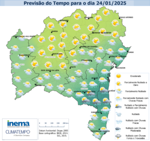 Neste sábado, o tempo deve permanecer firme na maior parte do estado, com possibilidade de chuvas de fraca intensidade no extremo Oeste e setor costeiro do estado, devido ao calor e umidade. Nas demais áreas, o tempo apresentará variação de nebulosidade, mas, de modo geral, continuará estável. Na capital, o céu ficará parcialmente nublado, com ocorrência de chuvas fracas e isoladas ao longo do dia.