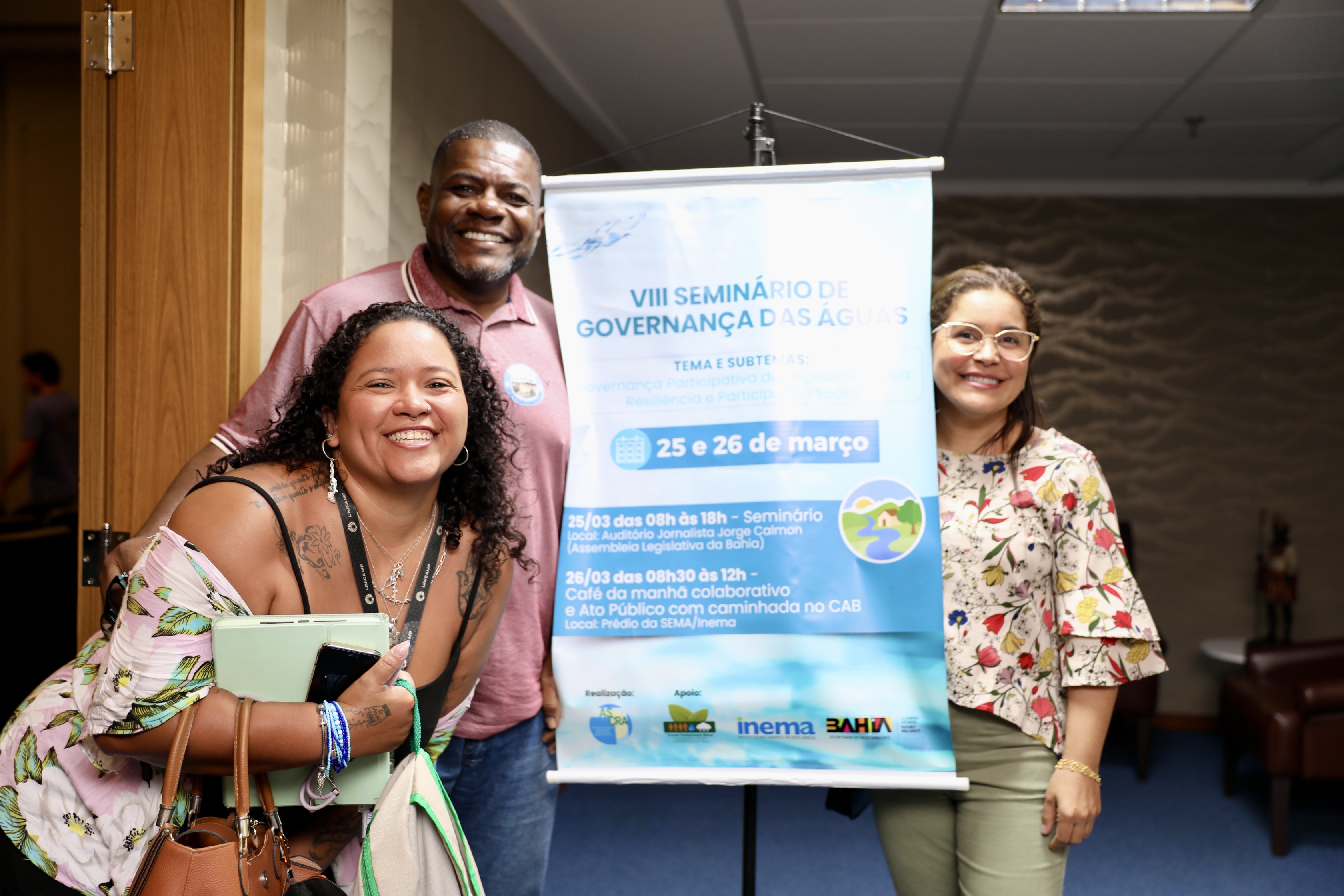 A Secretaria do Meio Ambiente (Sema) e o Instituto do Meio Ambiente e Recursos Hídricos (Inema) participaram, nesta terça-feira (25), do VIII Seminário de Governança das Águas, promovido pela Associação Pré-Sindical dos Servidores do Meio Ambiente e Recursos Hídricos (ASCRA). O evento, realizado no auditório Jorge Calmon, na Assembleia Legislativa da Bahia (ALBA), integra as celebrações do Dia Mundial da Água e destaca os avanços e desafios na gestão dos recursos hídricos no estado.