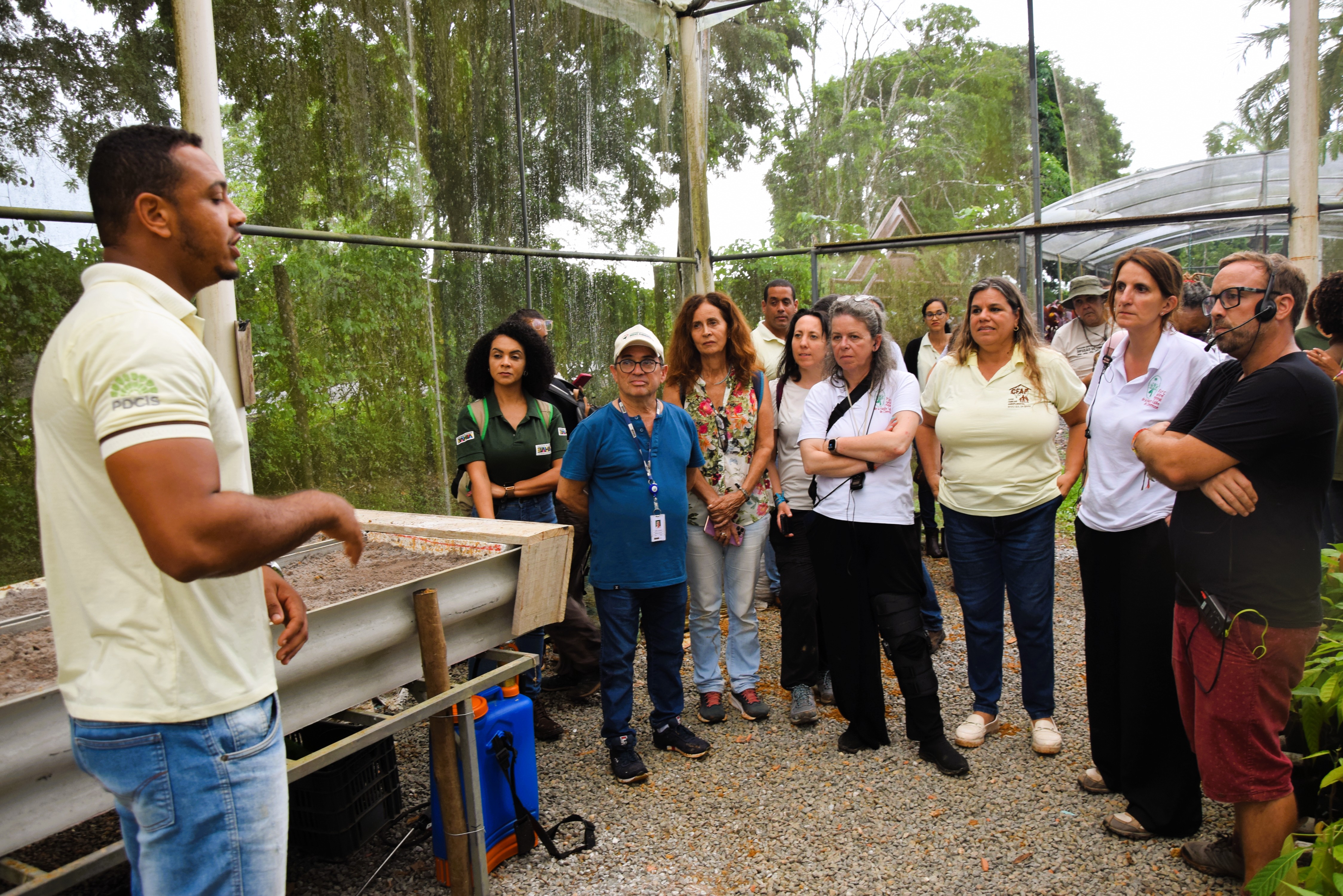 A Casa Familiar Agroflorestal do Baixo Sul (CFAF-BSB) foi o próximo destino da visita, destacando-se como um polo de transformação social e ambiental na região. A instituição forma jovens líderes no uso de práticas agroflorestais sustentáveis, oferecendo curso técnico de nível médio em florestas e valorizando saberes tradicionais, com foco especial nas comunidades quilombolas da região.