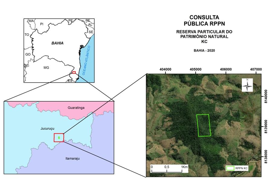 O INSTITUTO DO MEIO AMBIENTE E RECURSOS HÍDRICOS - INEMA torna público, em observância ao disposto no art.22, §2° e 3º, da Lei n 9.985, de 18.07.2000, e de acordo com o art. 5º, § 1°, do Decreto nº. 4.340, de 22 de agosto de 2002, que está estudando a proposta de reconhecimento da Reserva Particular do Patrimônio Natural – RPPN, denominada KC, com área de 28,6564 ha, de propriedade de Helio Bandeira Campos e Luciene de Oliveira Vales, localizada no município de Jucuruçu, Bahia e registrada no Cartório de Registro de Imóveis do município de Itamaraju.