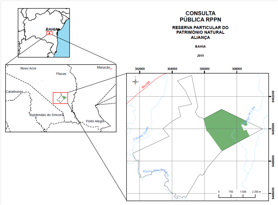 O INSTITUTO DO MEIO AMBIENTE E RECURSOS HÍDRICOS - INEMA torna público, em observância ao disposto no art.22, §2° e 3º, da Lei n 9.985, de 18.07.2000, e de acordo com o art. 5º, § 1°, do Decreto nº. 4.340, de 22 de agosto de 2002, que está estudando a proposta de reconhecimento da Reserva Particular do Patrimônio Natural – RPPN, denominada Reserva Aliança, com área de 437,3003 ha, de propriedade da Fazenda Reunidas Santa Maria Ltda, localizada no município de Iramaia, Bahia e registrada no Cartório de Registro de Imóveis do município de Iramaia.