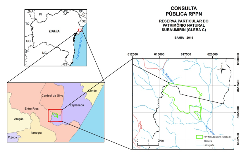 O INSTITUTO DO MEIO AMBIENTE E RECURSOS HÍDRICOS - INEMA torna público, em observância ao disposto no art.22, §2° e 3º, da Lei n 9.985, de 18.07.2000, e de acordo com o art. 5º, § 1°, do Decreto nº. 4.340, de 22 de agosto de 2002, que está estudando a proposta de reconhecimento da Reserva Particular do Patrimônio Natural – RPPN, denominada Subaumirin (Gleba C), com área de 631,9437 ha, de propriedade da Bracell Bahia Florestal Ltda, localizada nos municípios de Cardeal da Silva e Esplanada, Bahia e registrada nos Cartórios de Registro de Imóveis dos municípios de Entre Rios e Esplanada.