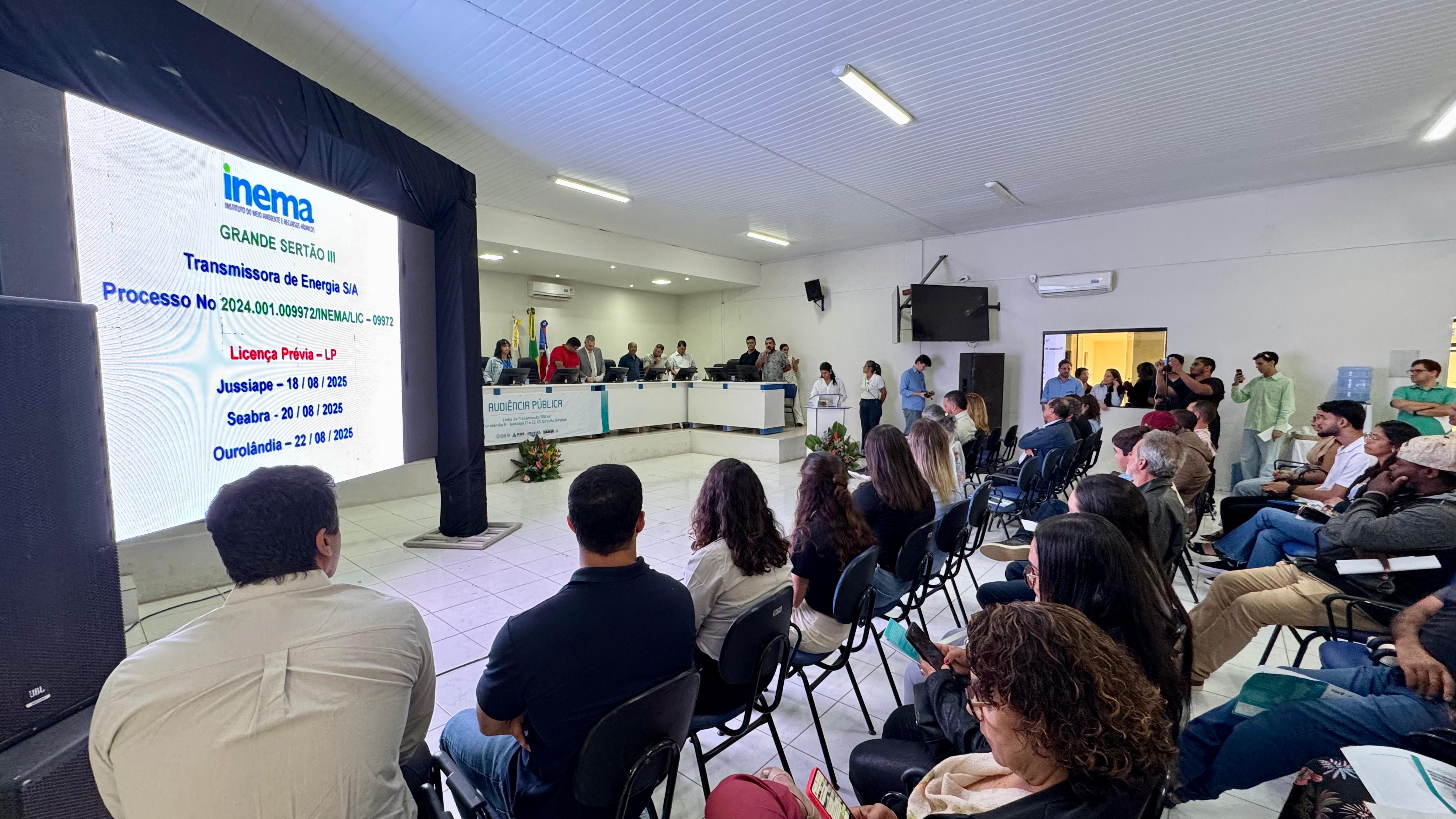 A Câmara Municipal de Seabra foi palco, nesta quarta-feira (20), de uma audiência pública promovida pelo Instituto do Meio Ambiente e Recursos Hídricos (Inema) para discutir o licenciamento da Linha de Transmissão 500 kV Ourolândia II – Jussiape, que integra o Projeto Grande Sertão III.