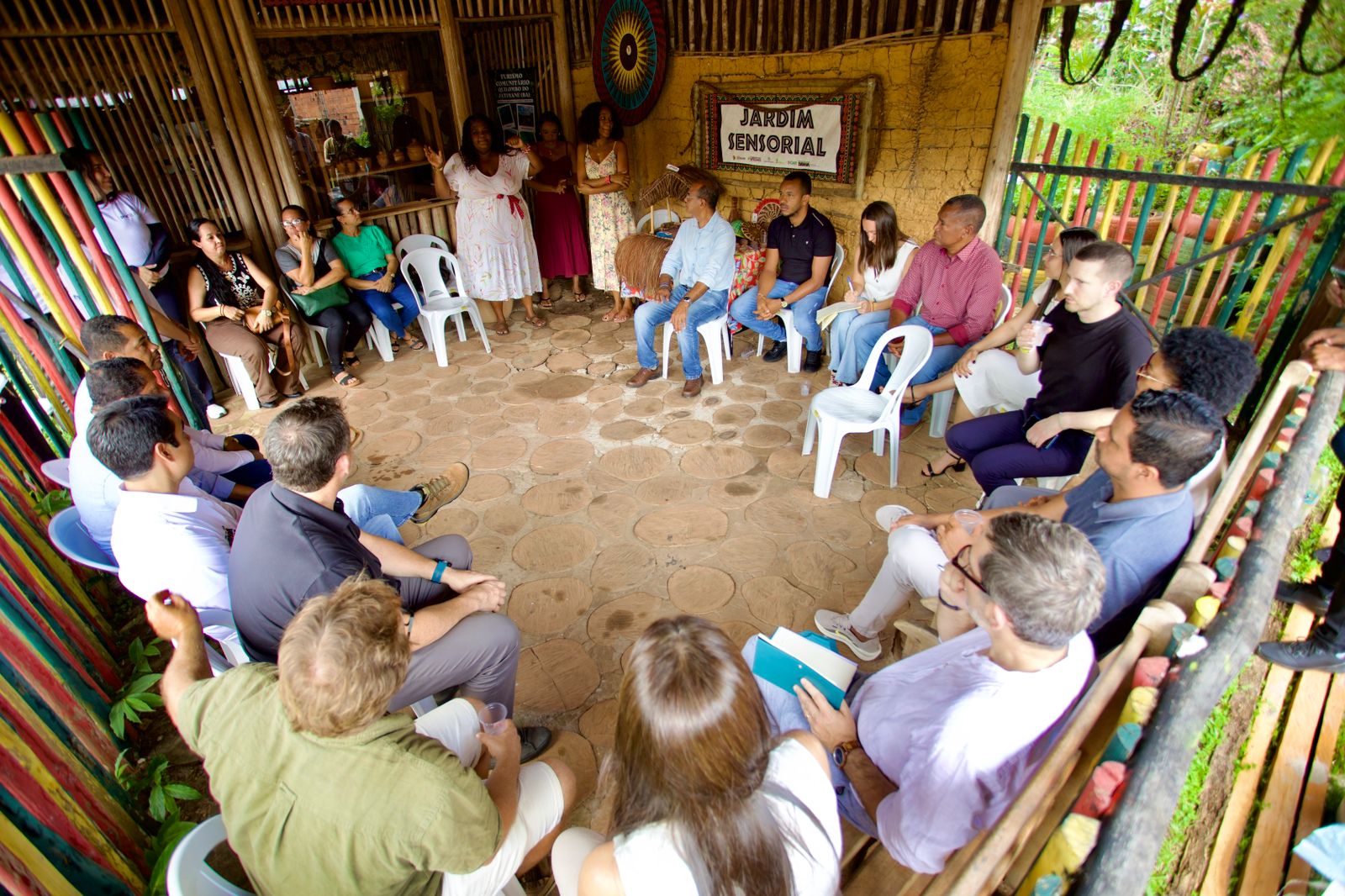 Durante a visita, o grupo conheceu experiências de turismo comunitário e agricultura sustentável desenvolvidas na região. Pedrina Rosário, da comunidade quilombola Jatimane, ressaltou o papel do turismo de base comunitária no fortalecimento social.