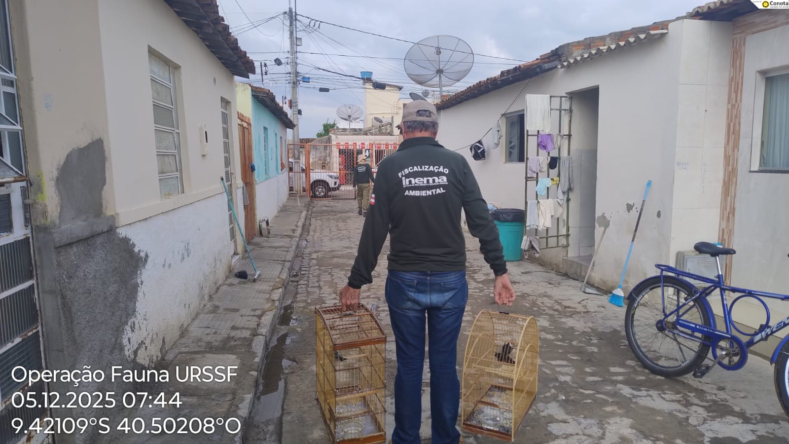 A Unidade Regional Sertão do São Francisco do Instituto do Meio Ambiente e Recursos Hídricos (Inema), sediada em Juazeiro, realizou entre os dias 5 e 8 de dezembro, uma ação de fiscalização ambiental que resultou na apreensão de 160 aves silvestres mantidas ilegalmente em cativeiro. A ação, desencadeada a partir de denúncias anônimas recebidas entre 2024 e 2025, contou com o apoio da Polícia Militar, por meio das 73ª, 74ª, 75ª e 76ª CIPM.