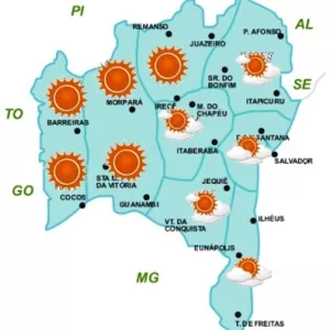 Final de semana com temperaturas elevadas e chuvas passageiras na Bahia