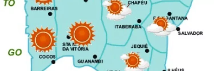 Final de semana com tempo quente e poucas chuvas sobre a Bahia