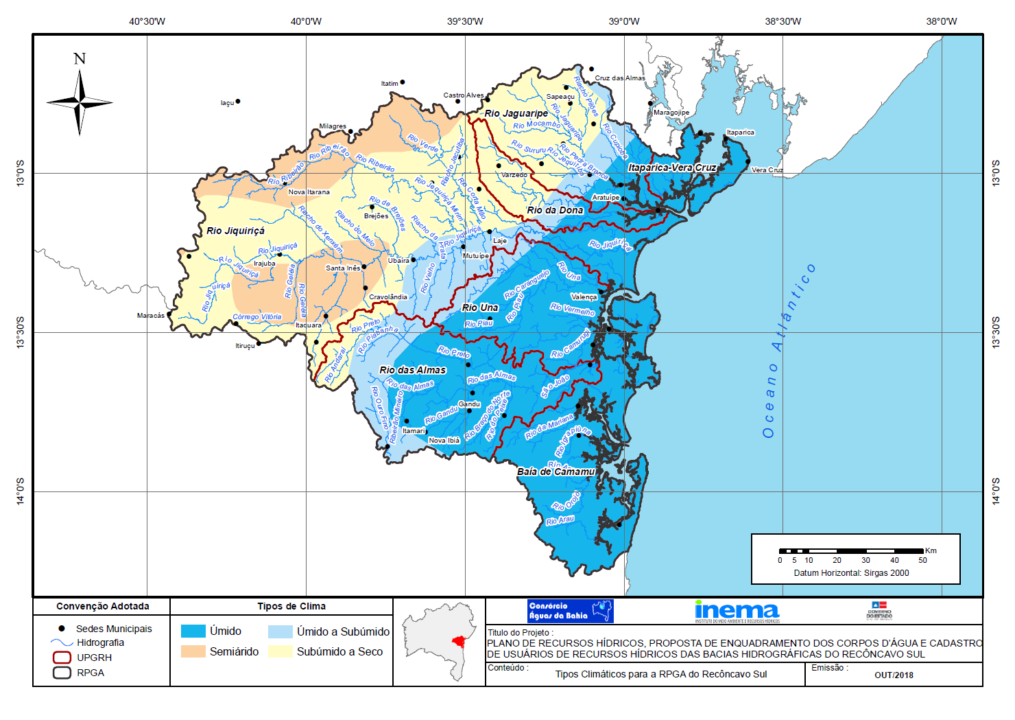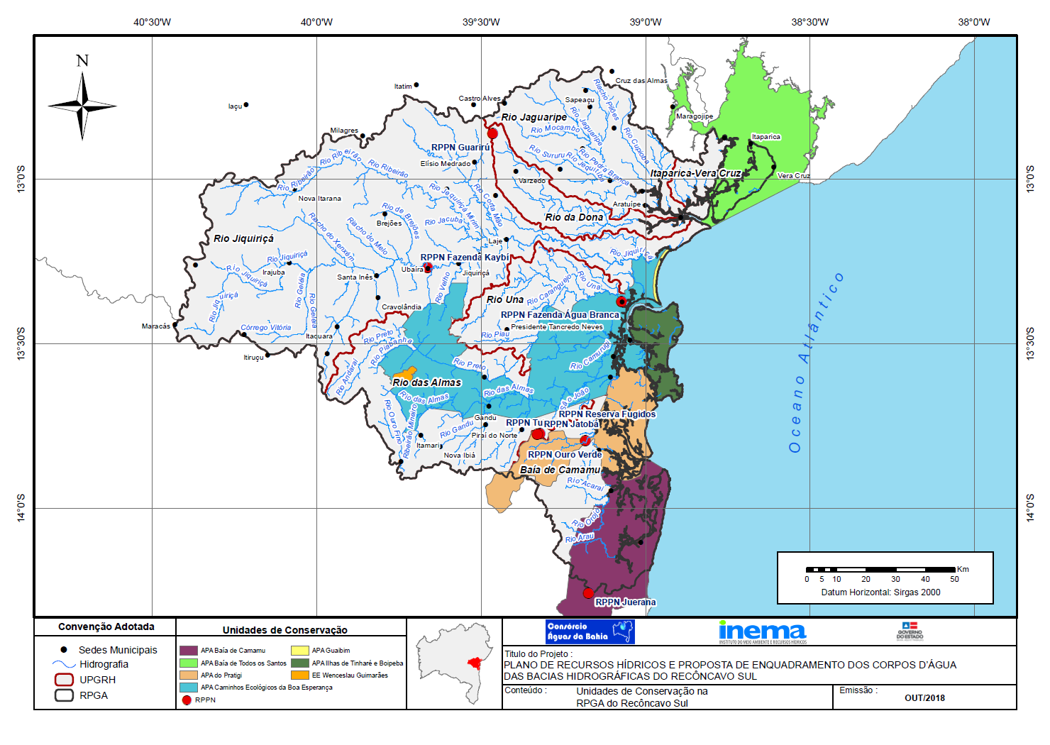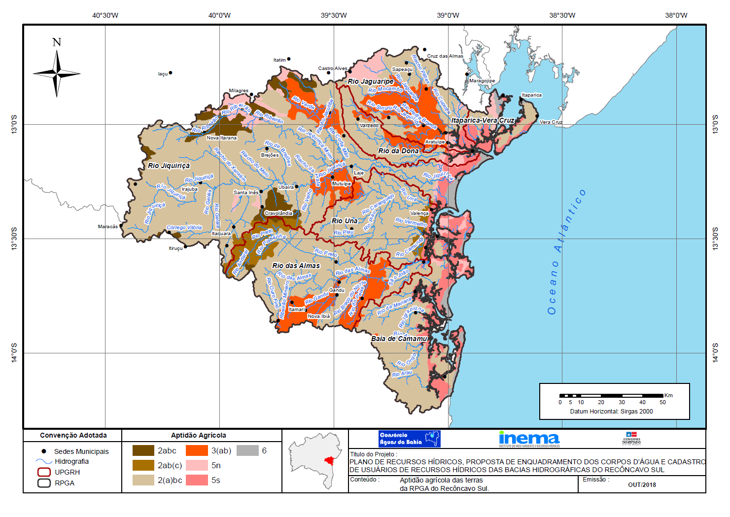 Em fevereiro de 2013, o Governo do Estado da Bahia, por intermédio do Instituto do Meio Ambiente e Recursos Hídricos (INEMA), contratou o Consórcio Águas da Bahia para elaborar, junto ao Comitê das Bacias Hidrográficas do Recôncavo Sul, o Plano de Recursos Hídricos e a Proposta de Enquadramento dos Corpos d\'Água das Bacias Hidrográficas do Recôncavo Sul.