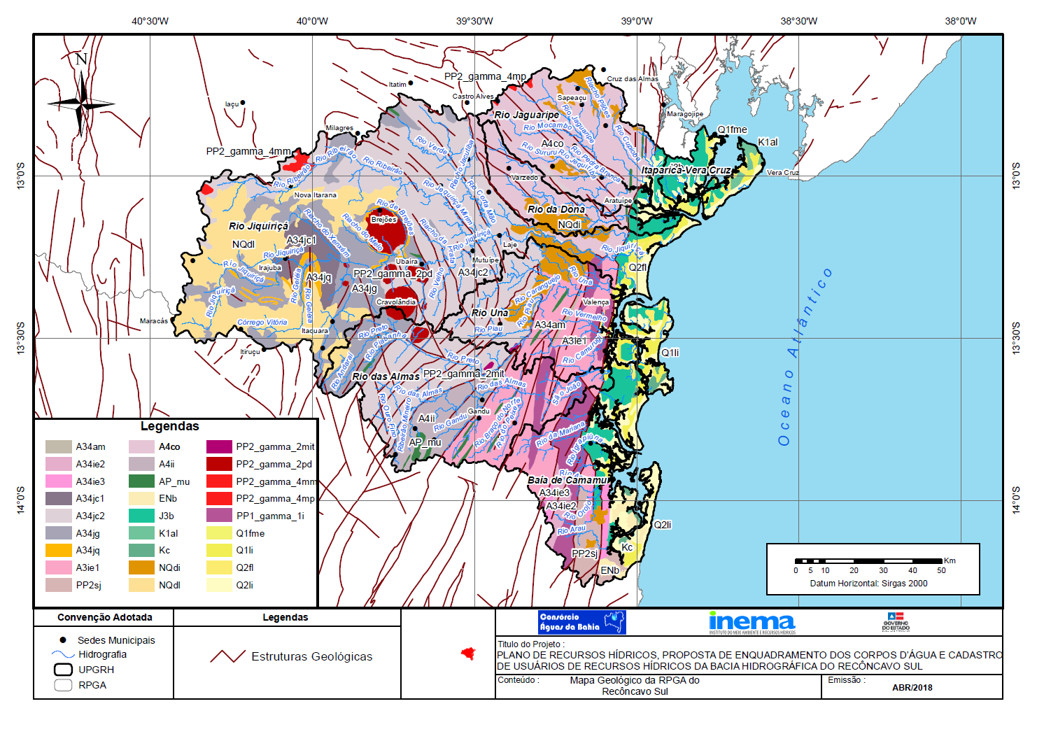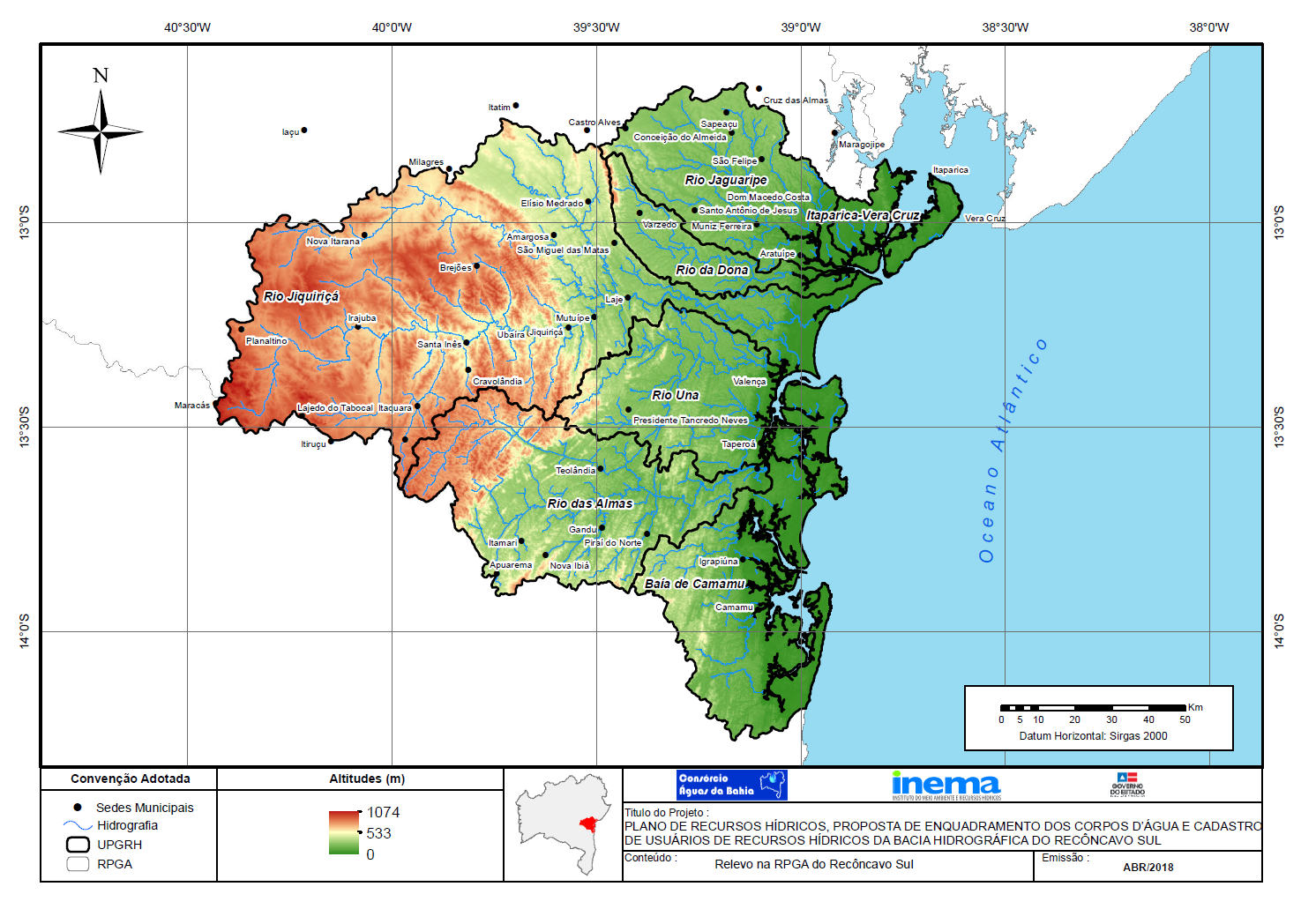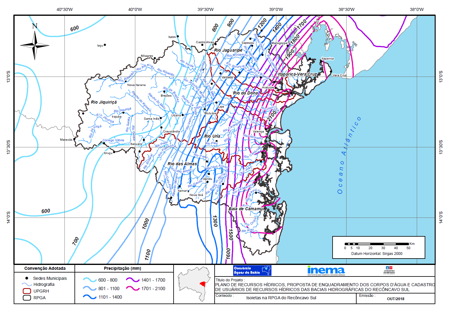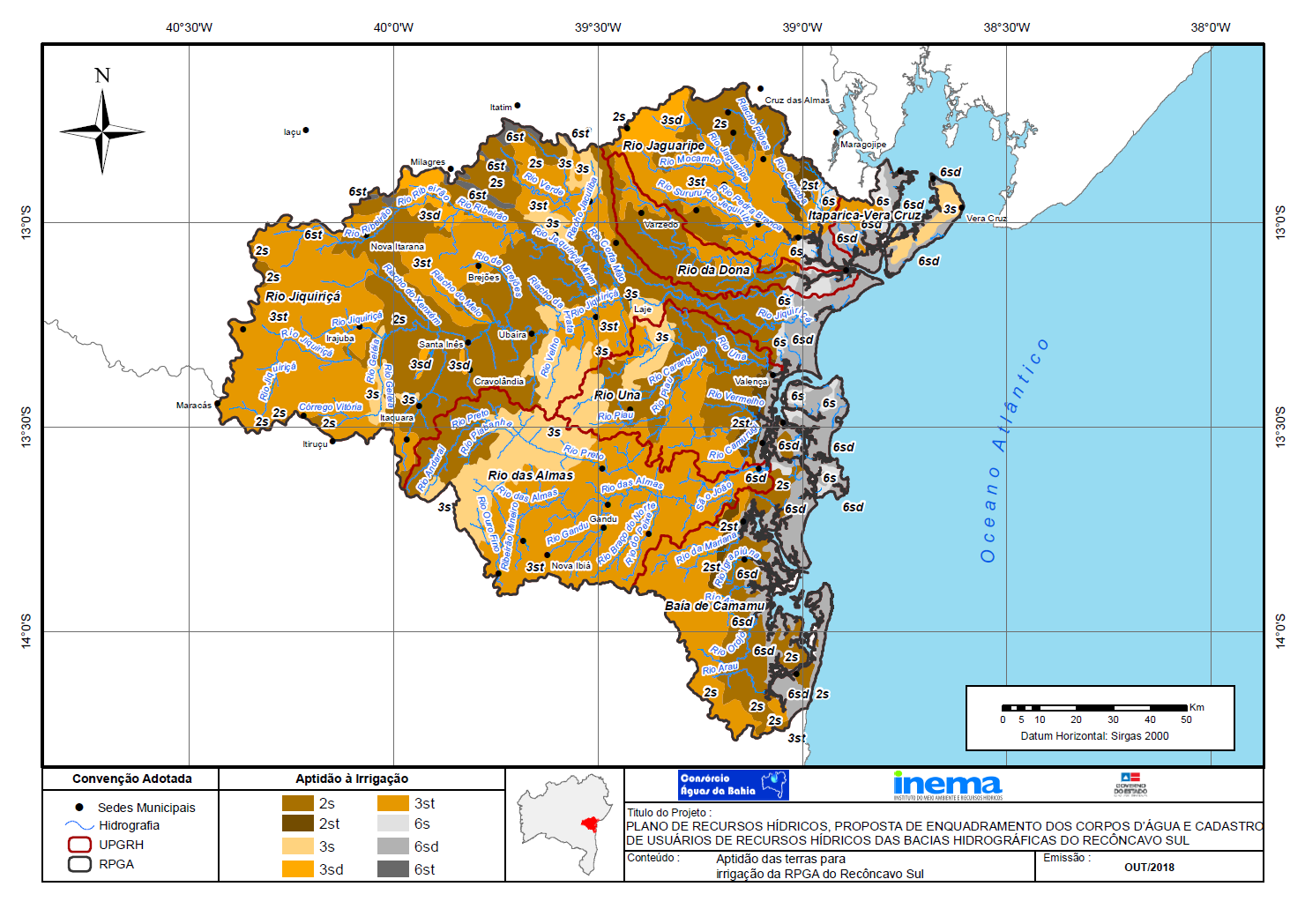 Em fevereiro de 2013, o Governo do Estado da Bahia, por intermédio do Instituto do Meio Ambiente e Recursos Hídricos (INEMA), contratou o Consórcio Águas da Bahia para elaborar, junto ao Comitê das Bacias Hidrográficas do Recôncavo Sul, o Plano de Recursos Hídricos e a Proposta de Enquadramento dos Corpos d\'Água das Bacias Hidrográficas do Recôncavo Sul.