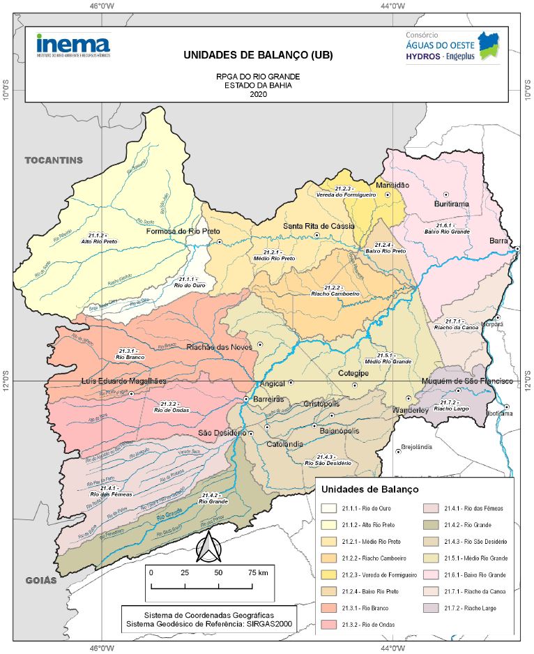 Em julho de 2019, o Governo do Estado da Bahia, por intermédio do Instituto do Meio Ambiente e Recursos Hídricos (INEMA), celebrou com o Consórcio Águas do Oeste Hydros- Engeplus, o contrato de número 004/2019, referente à prestação de serviços de consultoria para, junto aos Comitês das Bacias Hidrográficas do rio Grande e do rio Corrente, elaborar os Planos de Recursos Hídricos e das Propostas de Enquadramento dos Corpos de Água da RPGA do rio Grande e da RPGA do rio Corrente e Riachos do Ramalho, Serra Dourada e Brejo Velho.