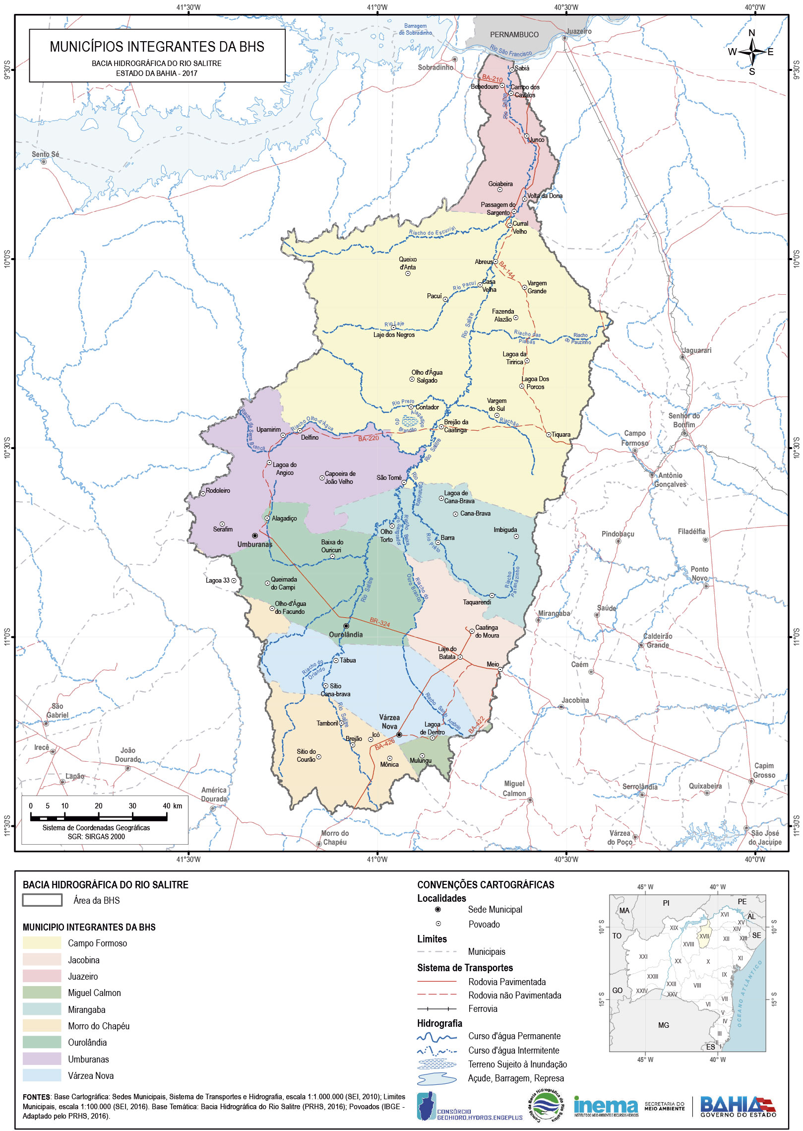 A construção do Plano de Recursos Hídricos da Bacia Hidrográfica do rio Salitre (PRHS) e da Proposta de Enquadramento dos Corpos d\'Água da Bacia Hidrográfica do rio Salitre (PES), com duração de 12 meses, contemplou a participação de atores representantes do poder público, sociedade civil, usuários da água e demais interessados, reforçando o caráter participativo de sua elaboração. Para tanto, foi colocado em curso um processo de mobilização e construção participativa com as diferentes instâncias da sociedade, abrangendo os nove municípios que integram a bacia hidrográfica do rio Salitre: Campo Formoso, Jacobina, Juazeiro, Miguel Calmon, Mirangaba, Morro do Chapéu, Ourolândia, Umburanas e Várzea Nova.