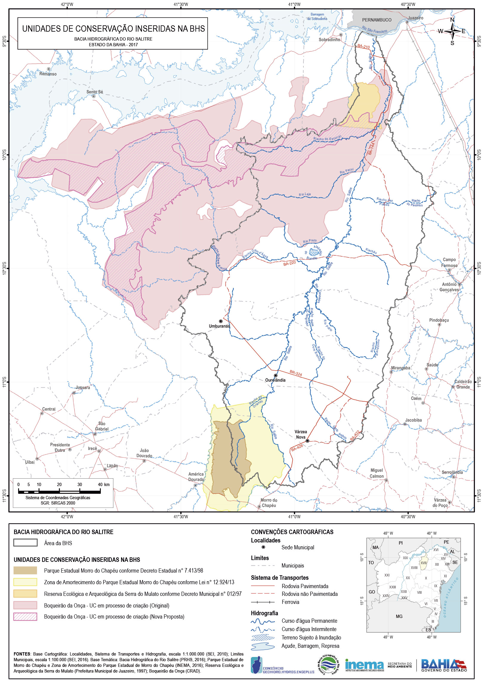 Em setembro de 2016, o Governo do Estado da Bahia, por intermédio do Instituto do Meio Ambiente e Recursos Hídricos (INEMA), contratou o Consórcio formado pelas empresas Geohidro Consultoria Sociedade Simples Ltda., Hydros Engenharia e Planejamento S/A e a Engeplus Engenharia e Consultoria Ltda. para elaborar, junto ao Comitê da Bacia Hidrográfica do rio Salitre, o Plano de Recursos Hídricos e a Proposta de Enquadramento dos Corpos d\'Água da Bacia Hidrográfica do rio Salitre.