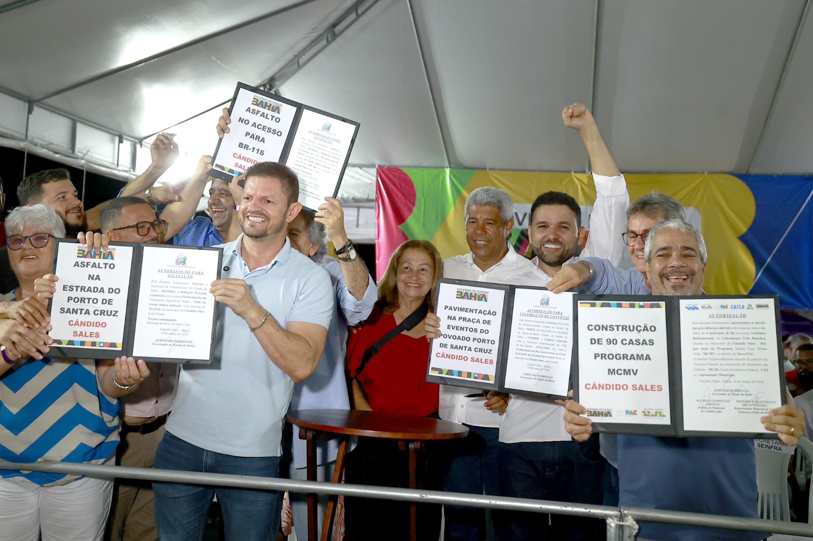 Na área de infraestrutura, Jerônimo autorizou a abertura do processo licitatório para pavimentação asfáltica na estrada de Porto Santa Cruz, em um trecho de aproximadamente 10 quilômetros. Também foi autorizada a licitação para pavimentação no trecho entre os acessos à BR-116, com cerca de cinco quilômetros de extensão, além da celebração de convênio com o Consórcio Intermunicipal do Vale do Rio Gavião para a realização de obras de pavimentação na praça de eventos do povoado Porto Santa Cruz.
