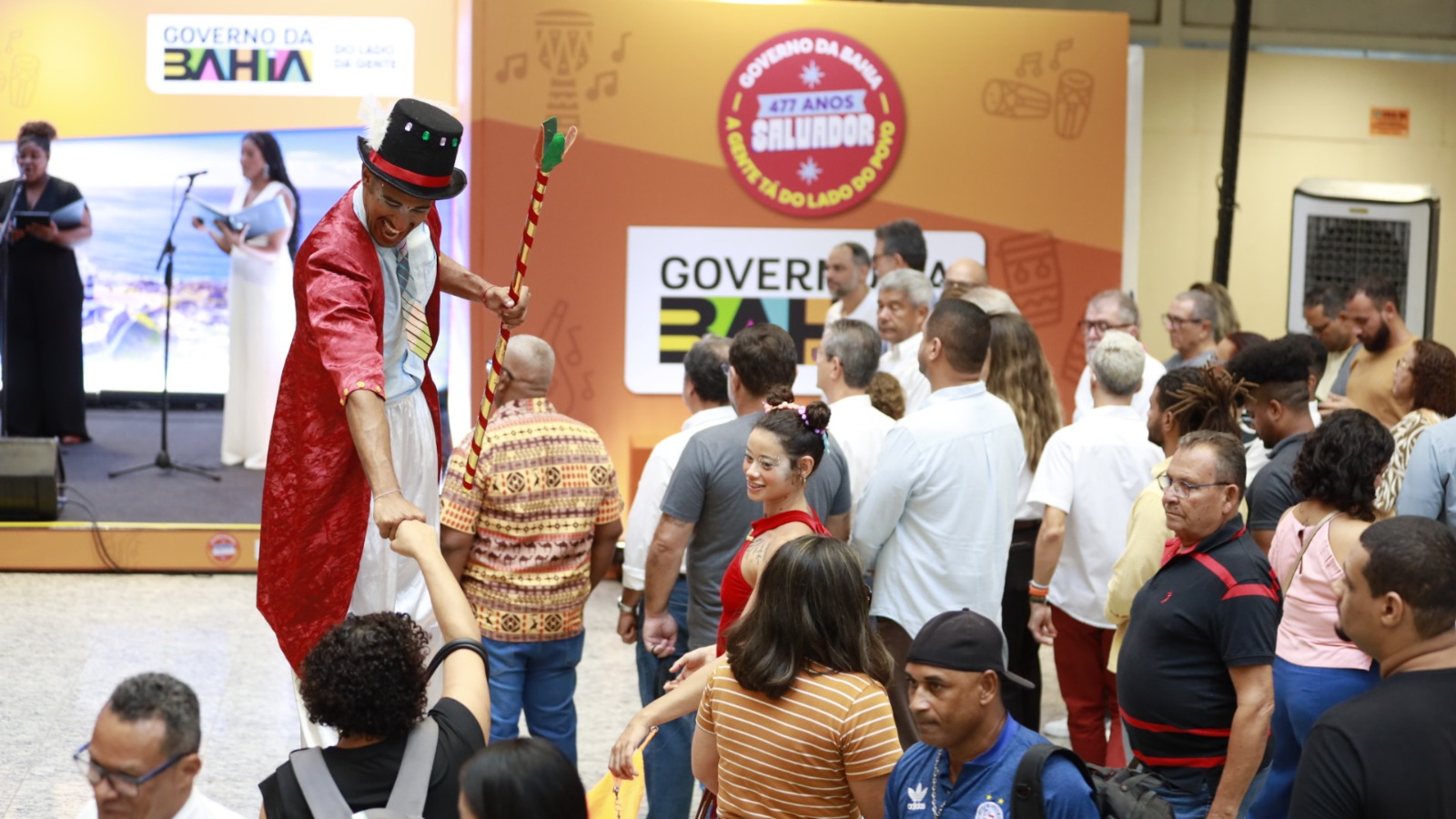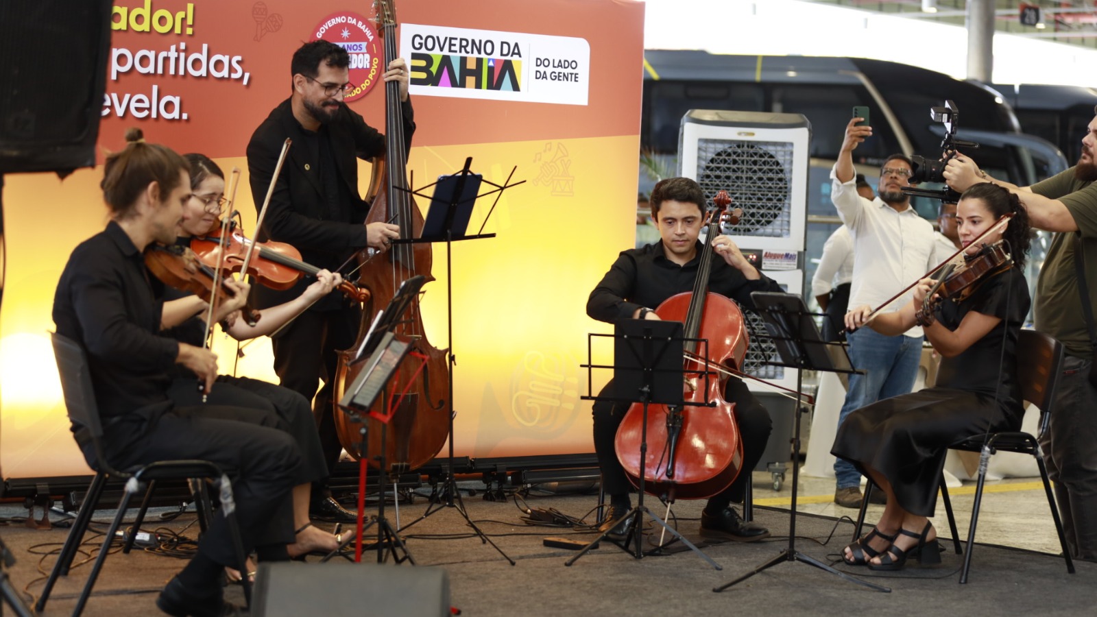 O aniversário de Salvador começou em clima de celebração, música, poesia e arte circense, neste domingo (29), ao som da orquestra do Neojiba (Núcleos Estaduais de Orquestras Juvenis e Infantis da Bahia), na Nova Rodoviária da Bahia, em Águas Claras, terminal que simboliza a modernização da cidade e a ampliação da mobilidade urbana. A apresentação contou com a presença do governador Jerônimo Rodrigues, que acompanhou a performance.