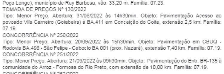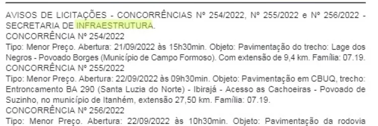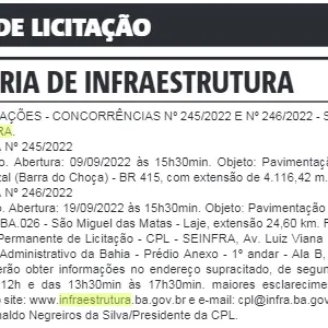 Bahia: Avisos de licitação são publicados para ações de Infraestrutura em quatro diferentes regiões