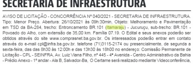Itapitanga tem recuperação da BA-651 autorizada e recebe equipamentos para o consórcio Litoral Sul