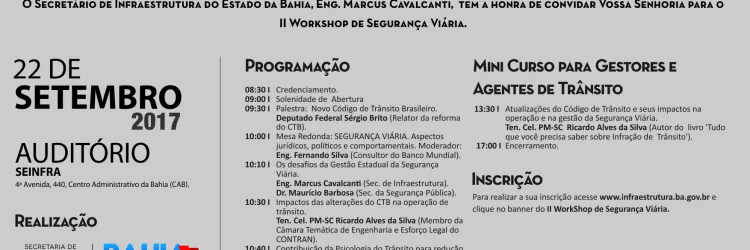 Inscrições abertas para II Workshop de Segurança Viária