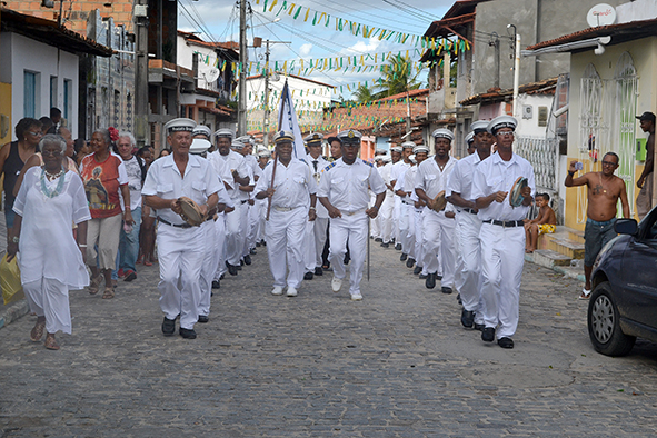 Em Saubara, a marujada acontece desde 2013. “A cada ano nossa festa reúne grupos da Bahia, estudantes, turistas e pesquisadores”, lembra o coordenador do evento, Rosildo Rosário. Em Saubara a festa louva ao padroeiro da cidade, São Domingos de Gusmão. Os integrantes percorrem as ruas ao som do pandeiro, acompanhado por vozes e instrumentos de percussão e sopro. “Após mapeamento, detectamos 27 grupos no estado”, afirma Rosário. Popularizada por Mário de Andrade, a chegança, também chamada de marujada, possui forte teor dramático, devido ao seu bailado popular, com partes faladas e representadas.